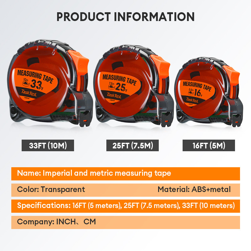 TaskTool Metro Measuring Tape Metric Tape Measure Fluorescerous Self-locking Meter Tape