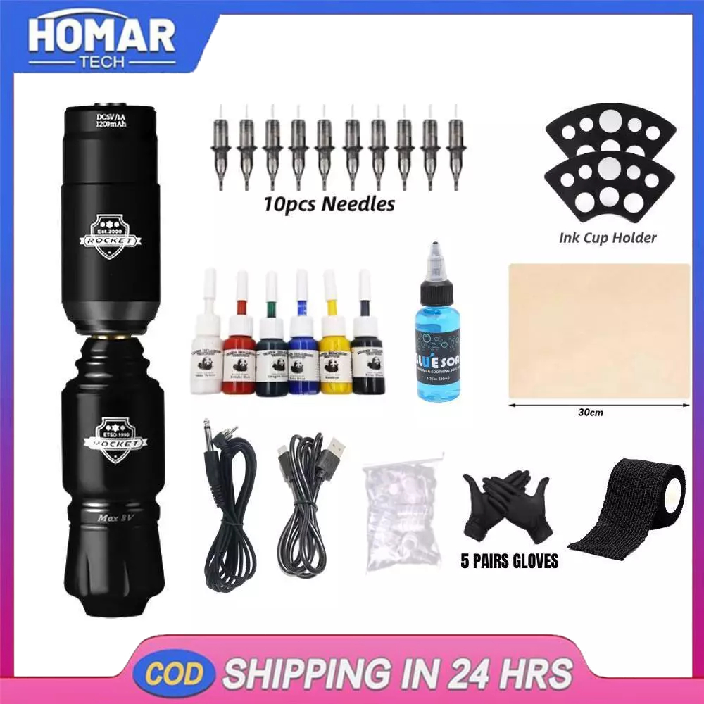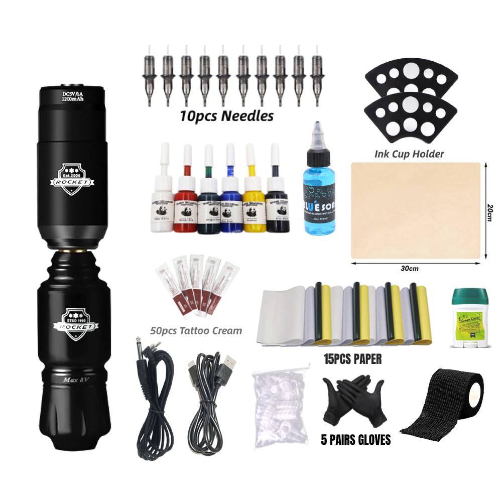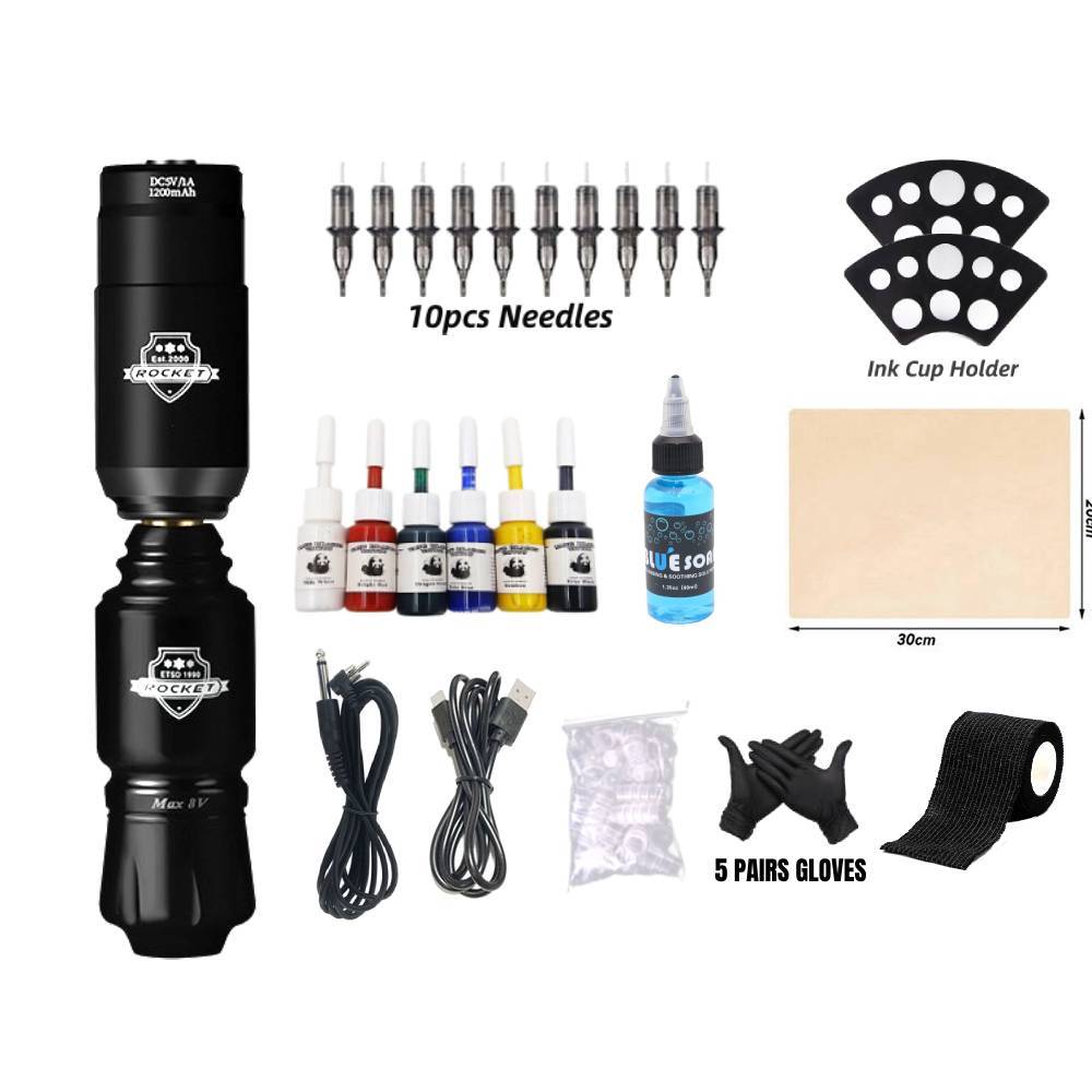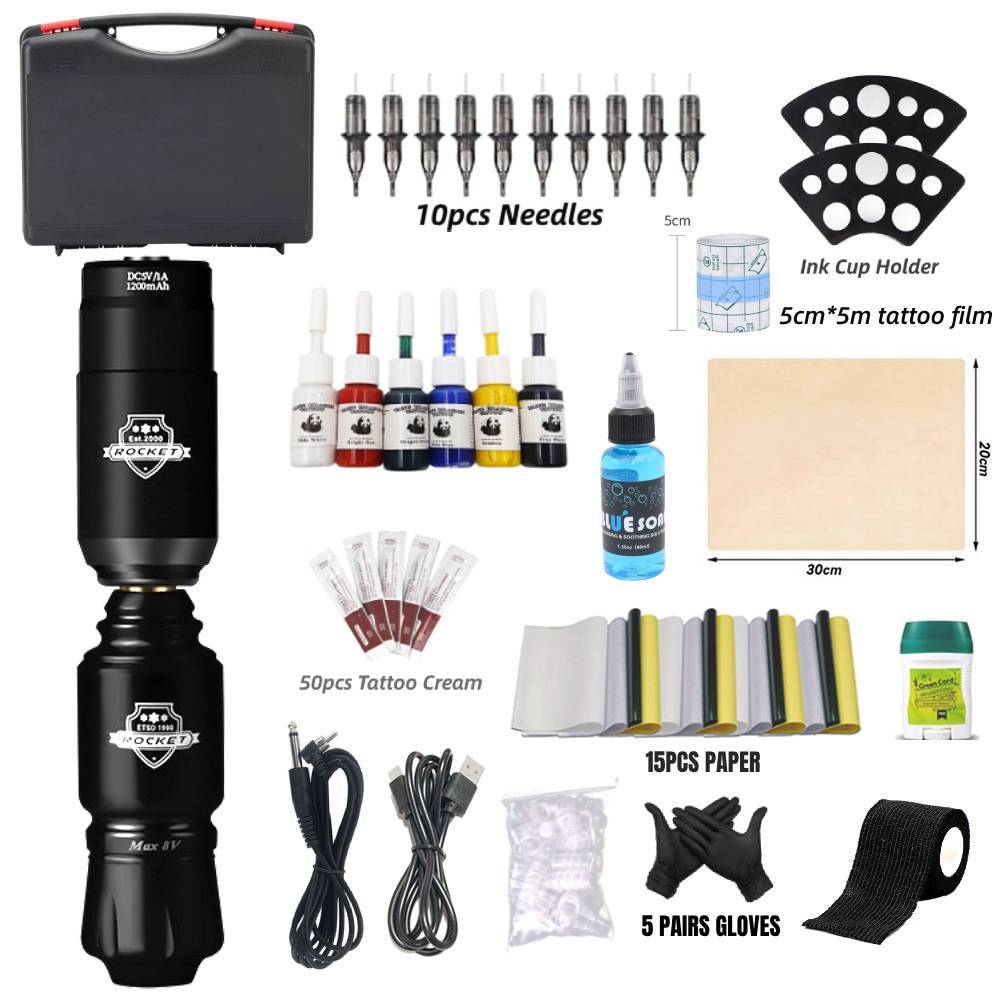 Tattoo Full Mini Rockect Tattoo Machine Tattoo Artist Tool Set Pen Type Tattoo with Tattoo Supply