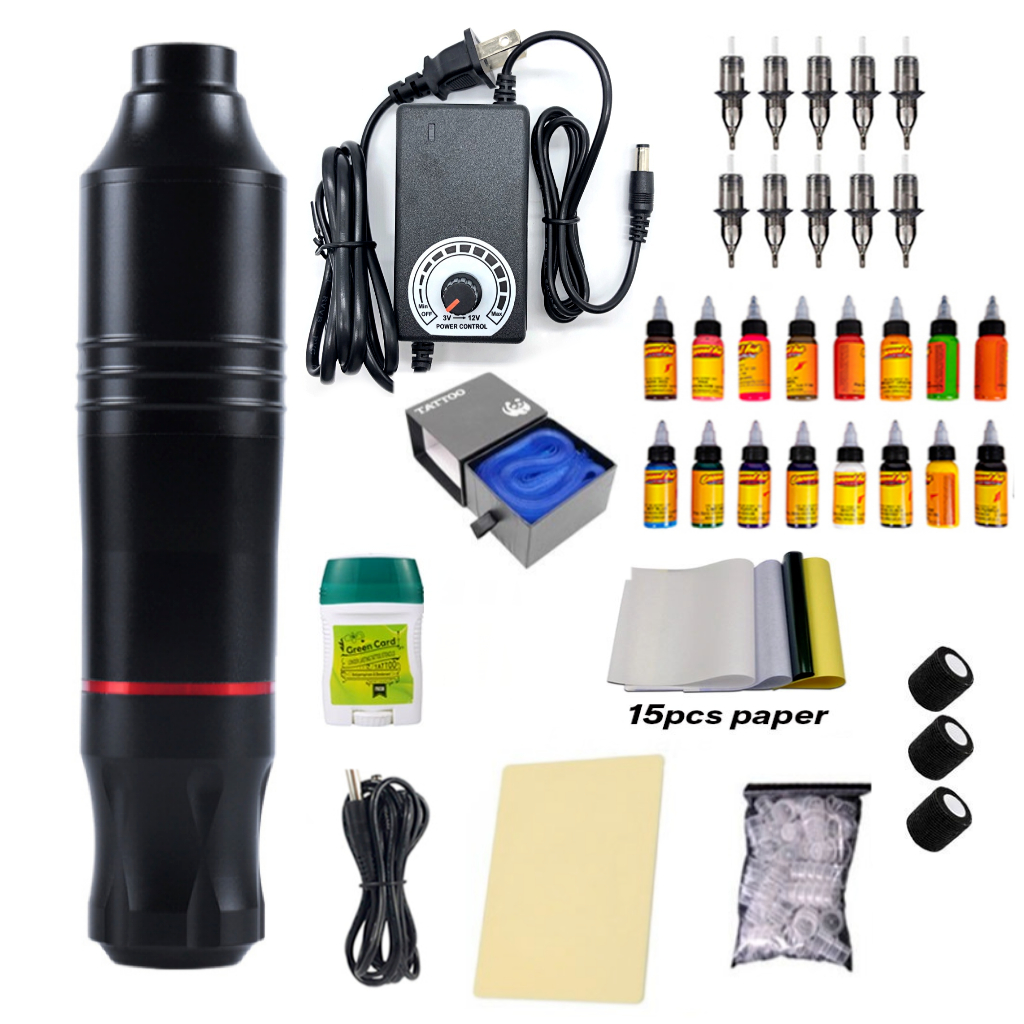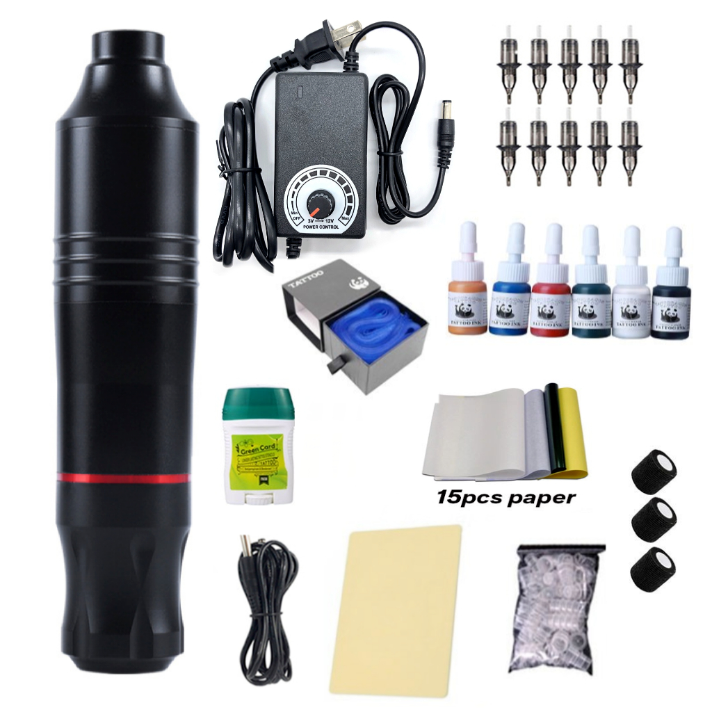 Tattoo Pen Type Portable Machine Complete Set DC Rotary Tattoo Pen With Controllabl Power Supply Set