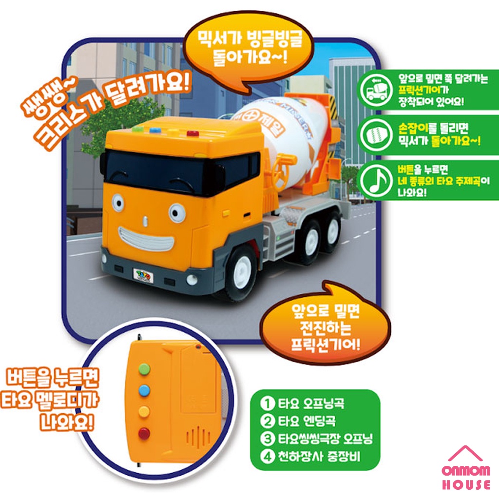 Tayo Little Bus GIANT CHRIS Big Size Friction Mixer Truck Toy Korean Sound