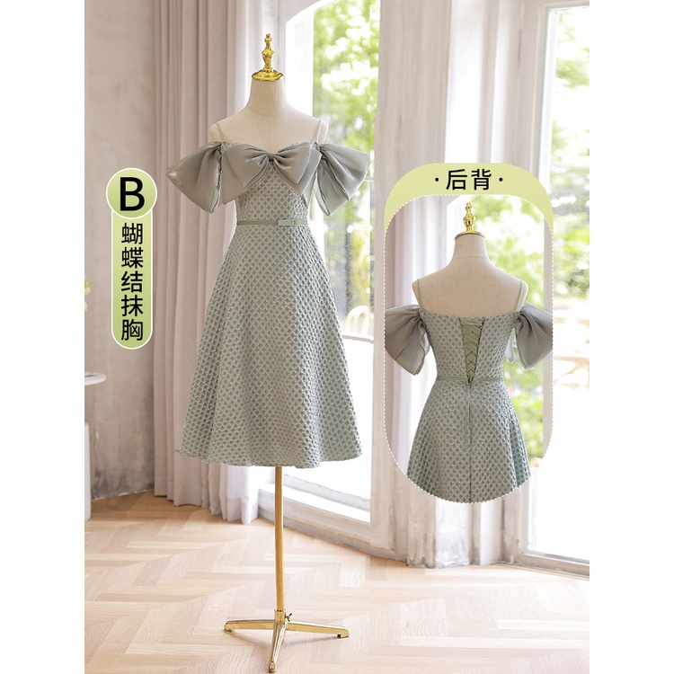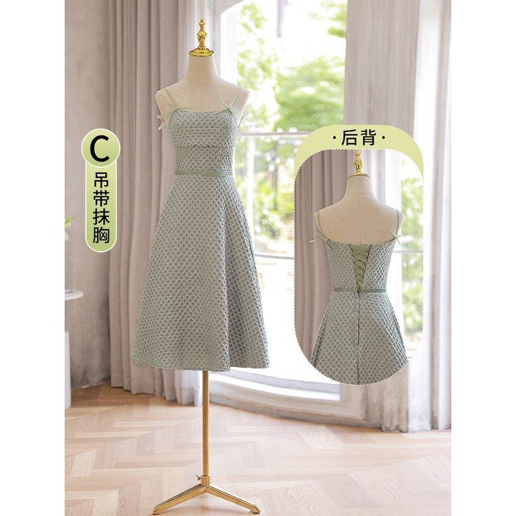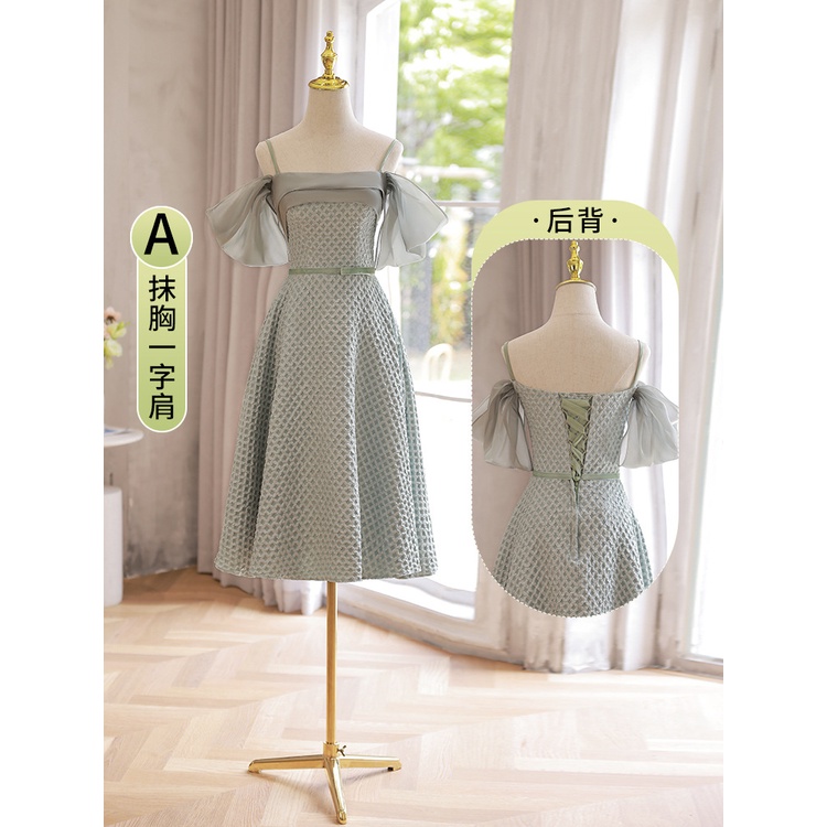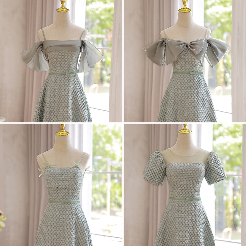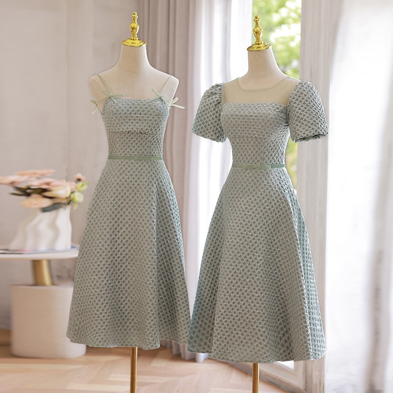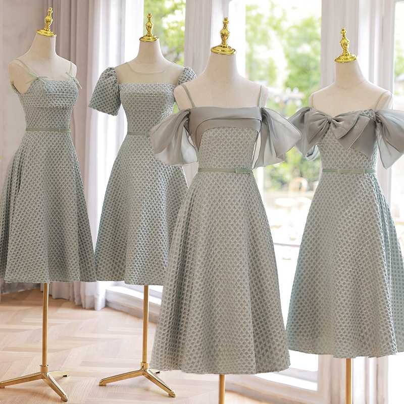 Tea-Length Bridesmaid Dress 2024 Sage Green Sister Bridesmaid Gown for Wedding Graduation Prom Party Dress