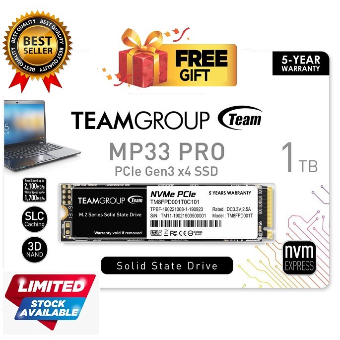 Team Elite 1TB MP33 M.2 NVMe PCIe SSD 3 times faster than SATA III with Free Gift
