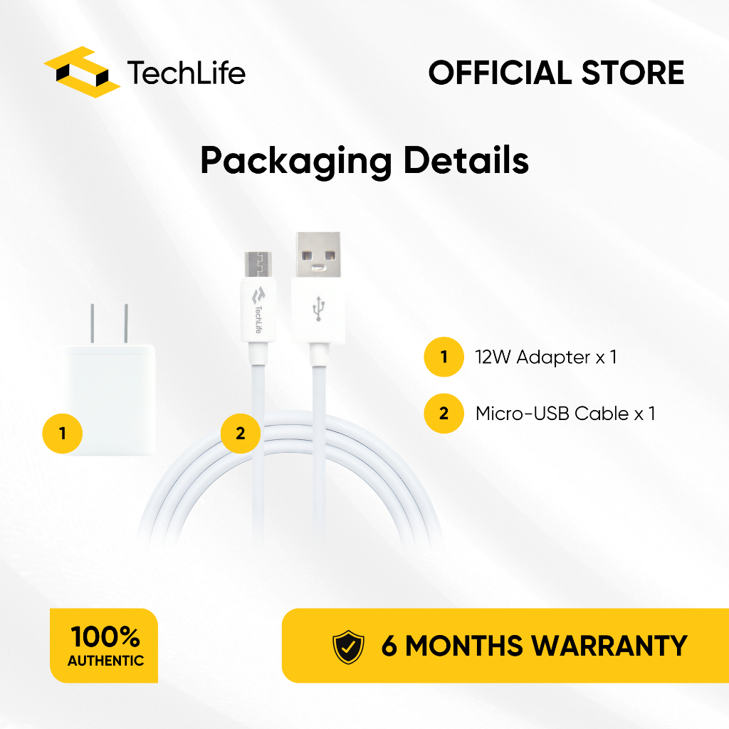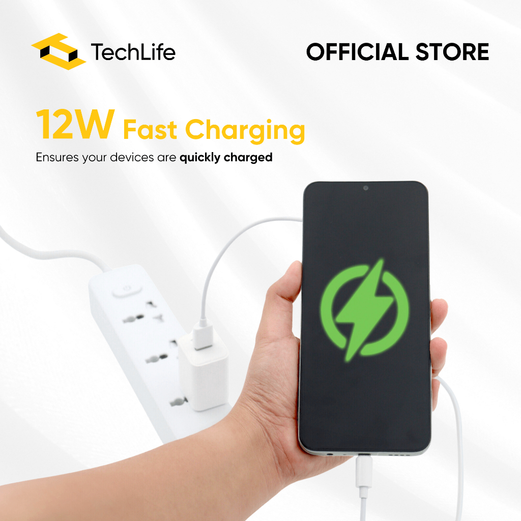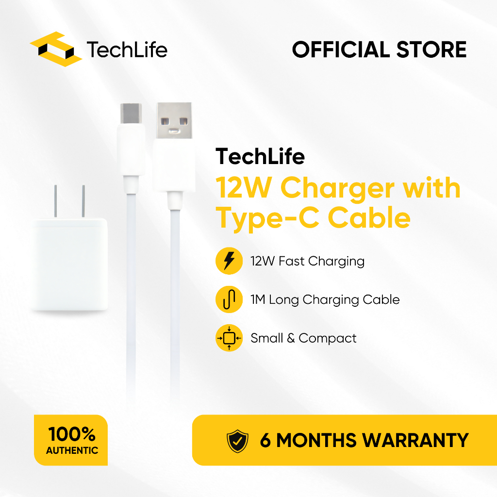 TechLife 12W Charger | Fast Charging | 1M Long Charging Cable | Type-C