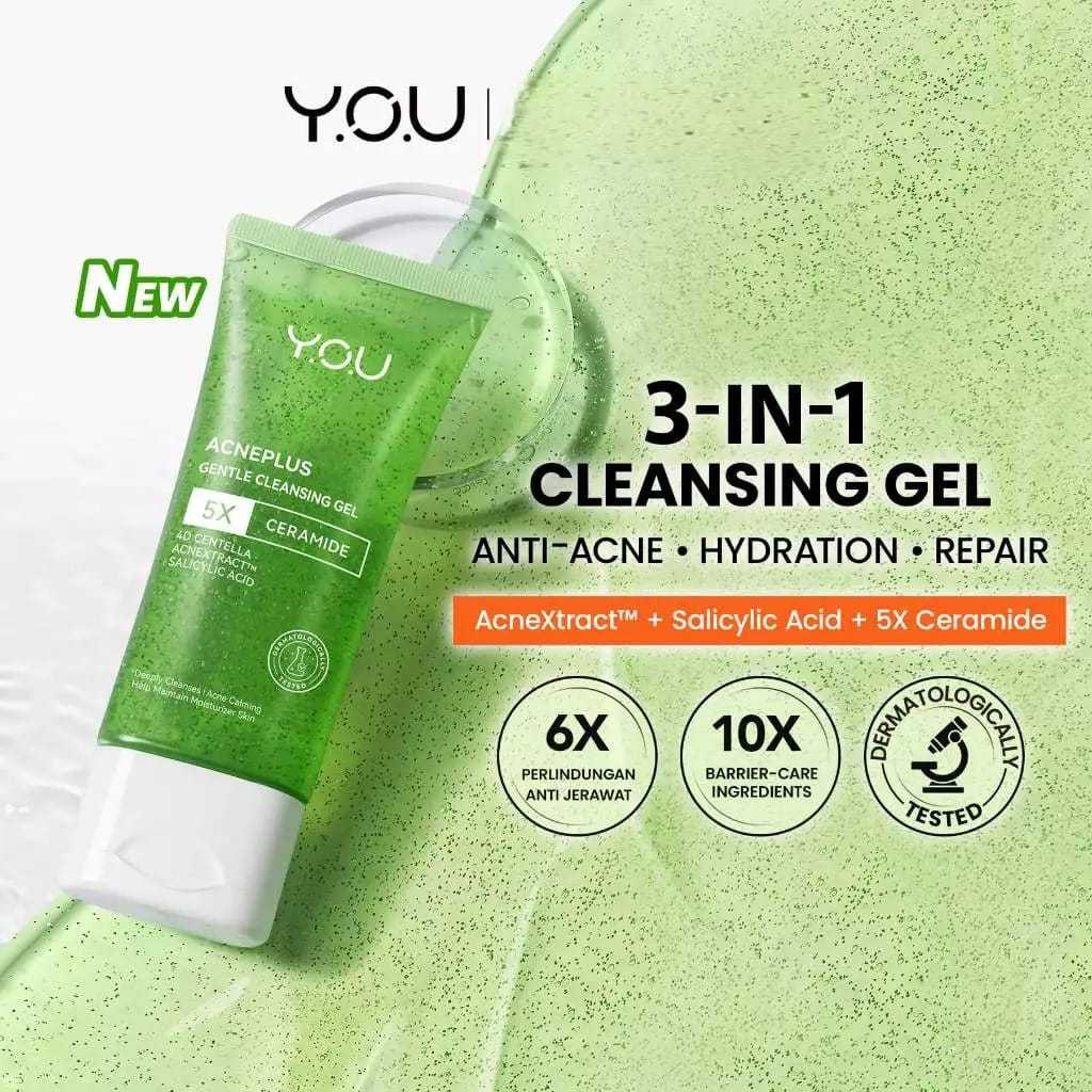 Y.O.U AcnePlus Cleansing Gel 100ml – 5X Ceramide, Salicylic Acid, Centella, Anti-Acne Formula