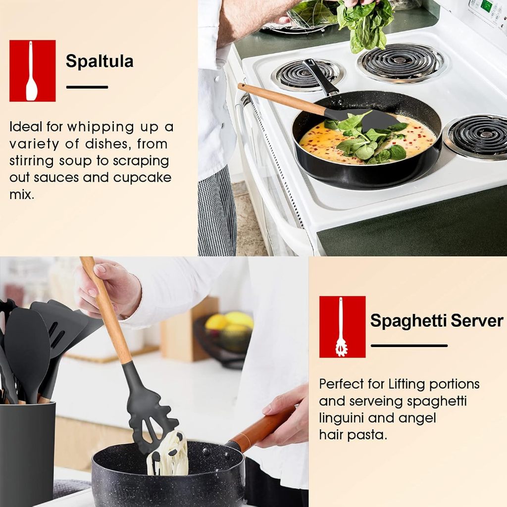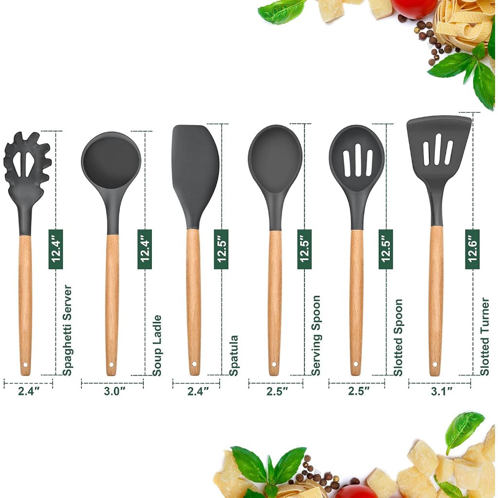 Silicone Kitchen Utensils 6-Piece Set with Wooden Handle, Heat Resistant & Non-Stick Friendly, Gray