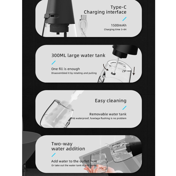 New Arrived Cordless Water Flosser | USB Rechargeable | 360° Nozzle | Clean | Portable