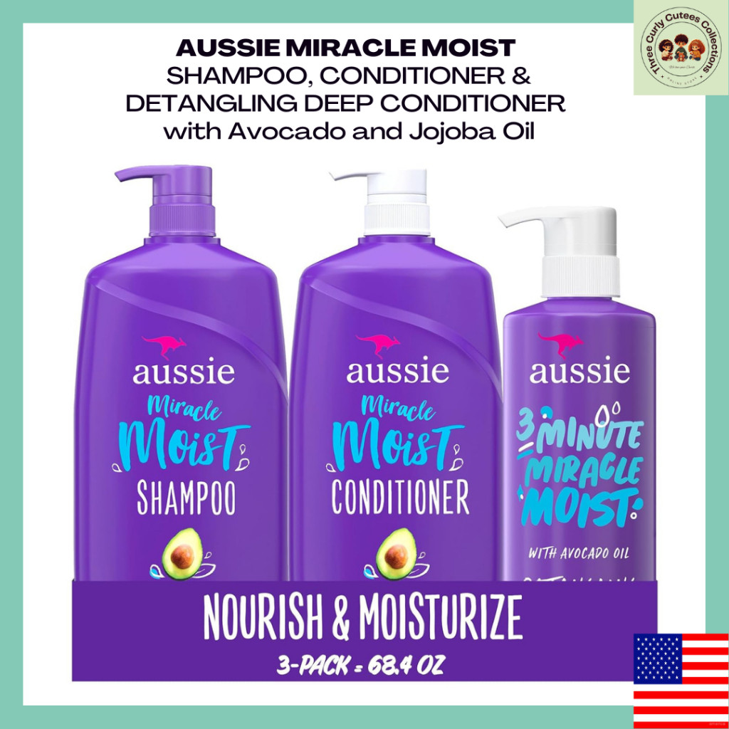 Aussie Miracle Moist Shampoo and Conditioner 3 Minute Miracle Deep Conditioner, Avocado & Jojoba Oi