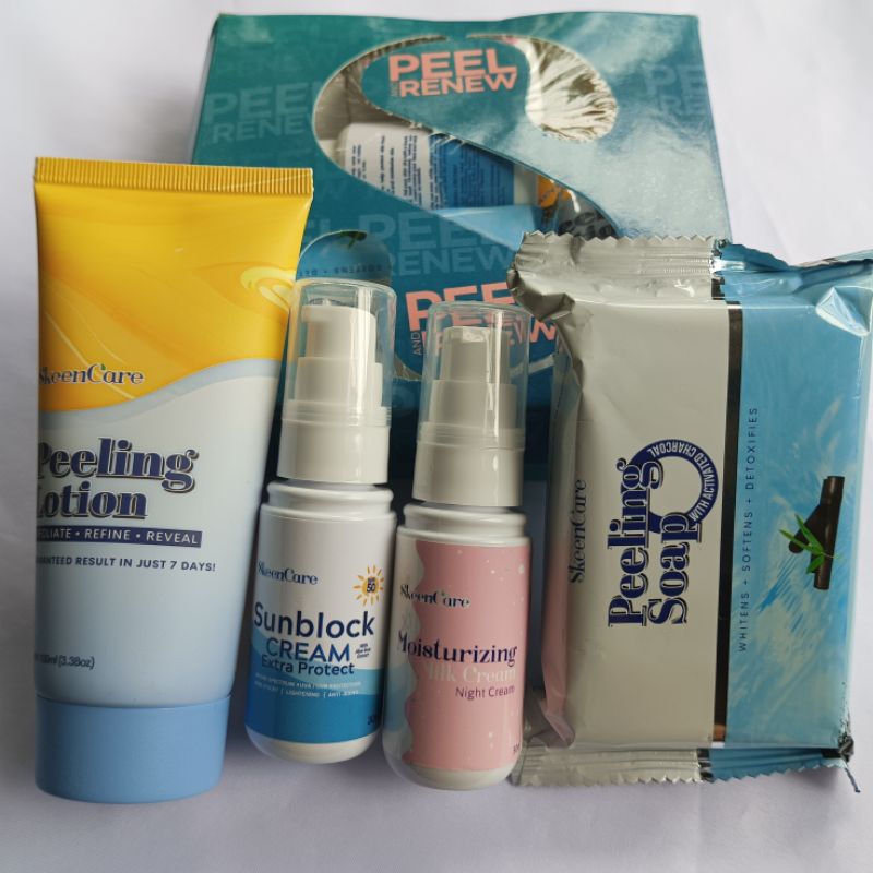 SkeenCare Peel and Renew Big Set Peeling Lotion 100ml, Sunblock, Moisturizing Cream,Soap 135g