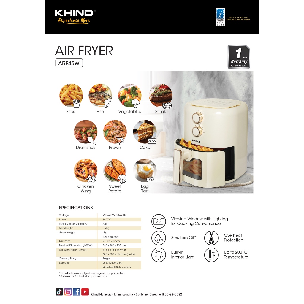 Khind Air Fryer 4.5L ARF45W