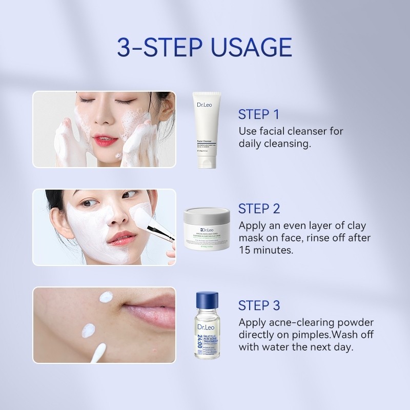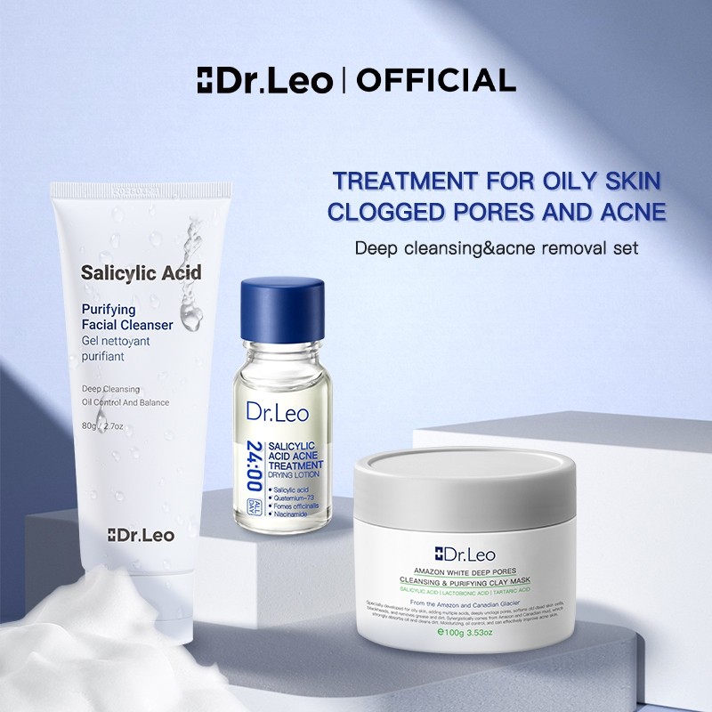 Dr.Leo ANTI-ACNE 3pcs Set Combo Polyamino Acid Purifying Facial Cleanser 80g + Deep Pores Cleansing