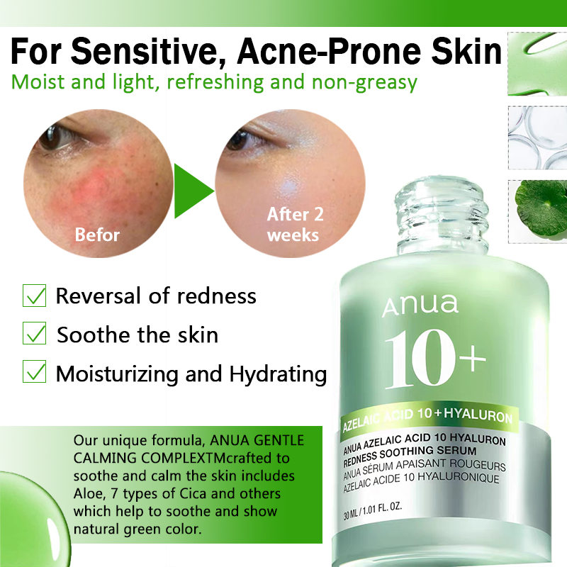 ANUA Azelaic Acid 10% + Hyaluron Redness Soothing Serum 30ml – Acne Pimple Marks Scar Remover Oil