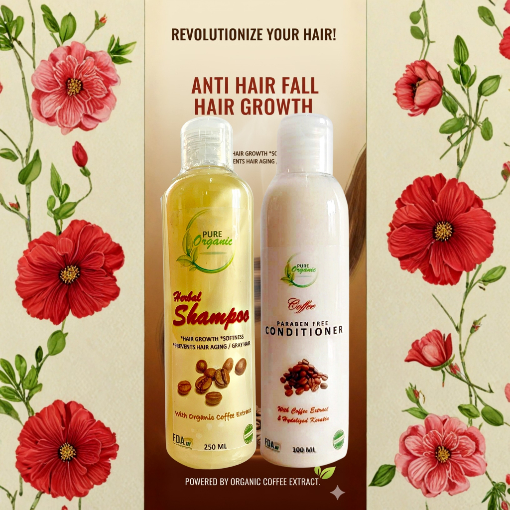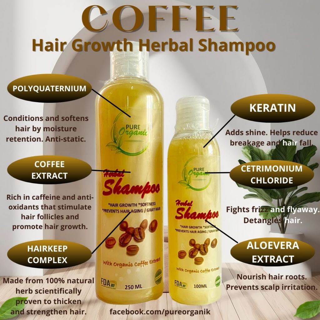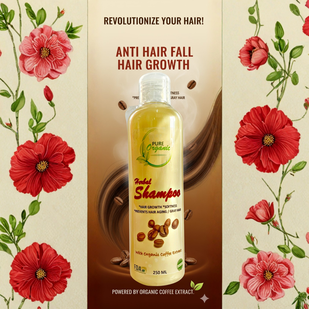 Coffee Extract Herbal Shampoo by Pure Organic Hair Growth And Hair Thickener