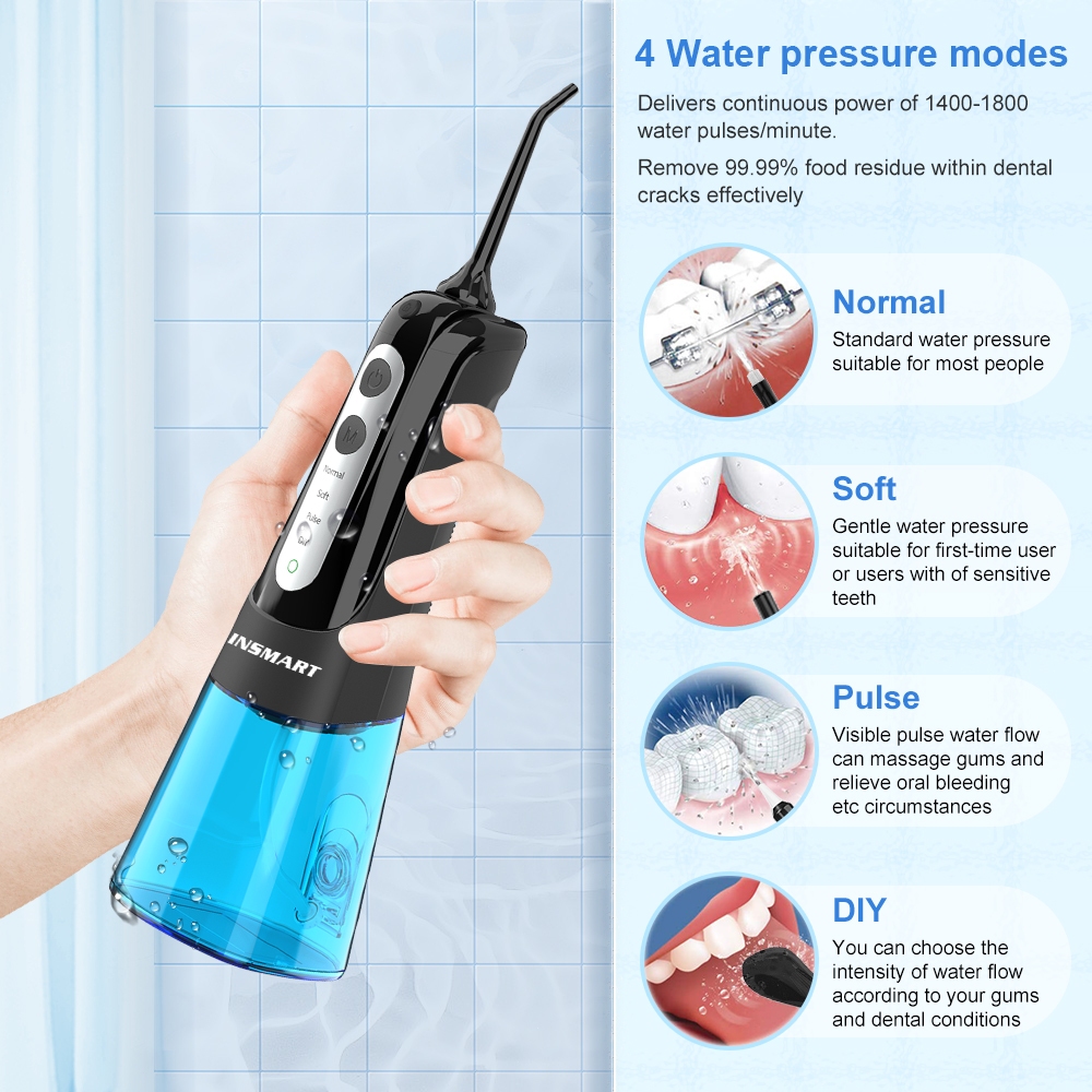 INSMART Water Flosser 4Modes 7Nozzles Water Floss Water Flosser Oral Care Water Jet Flosser