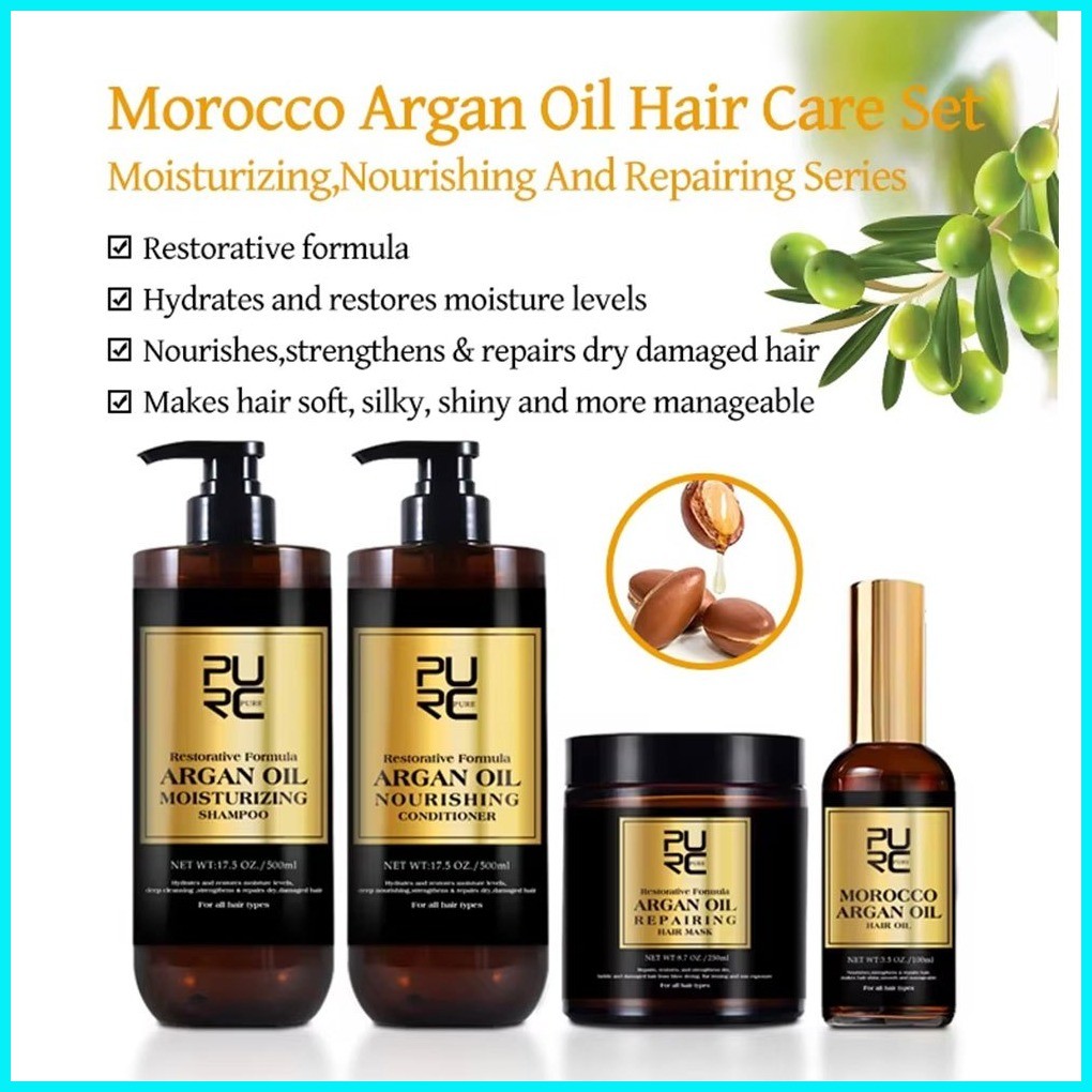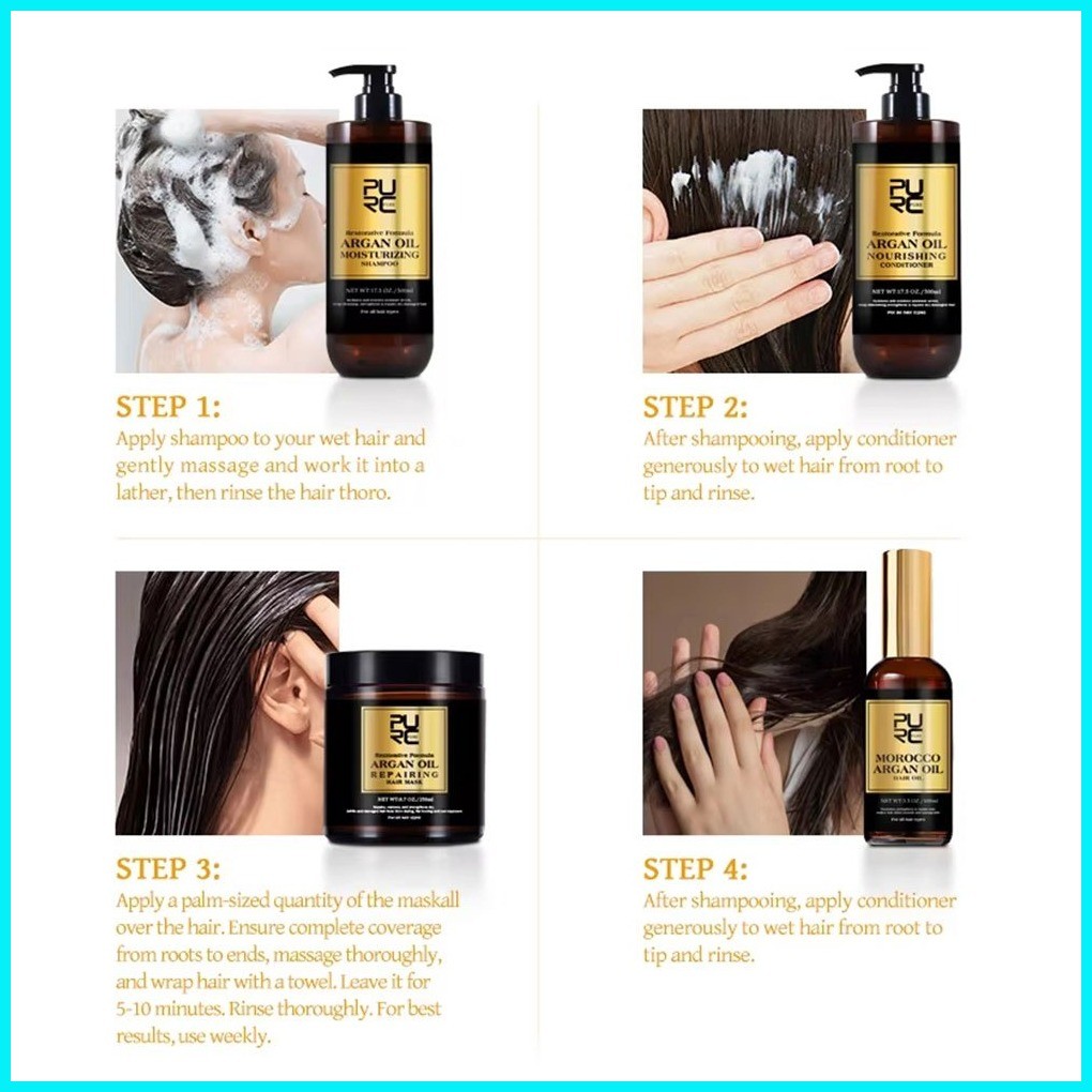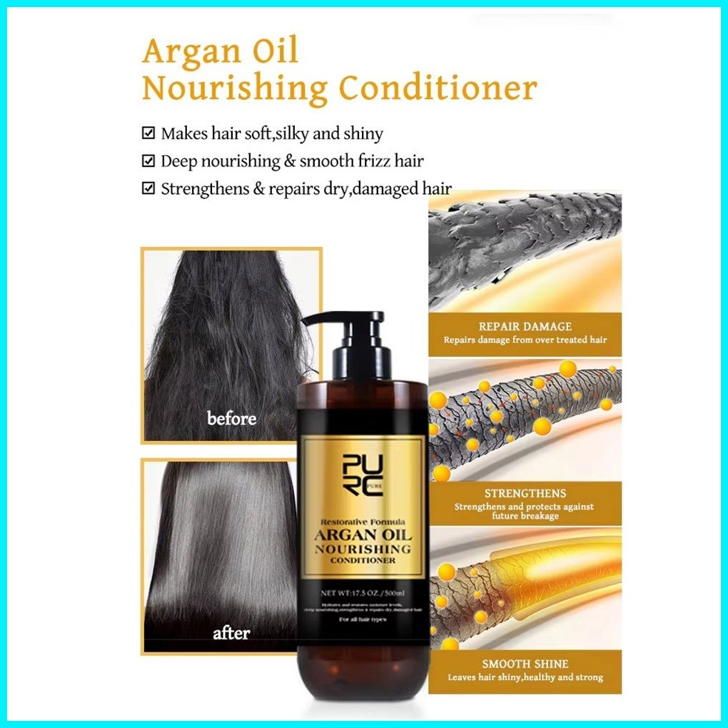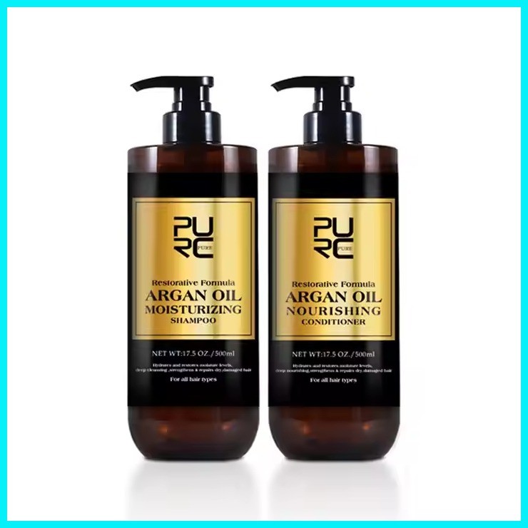 PURC 500g Argan Oil Shampoo Conditioner Set Smoothing Hair Treatment Vitamin E Moisturizing Repair