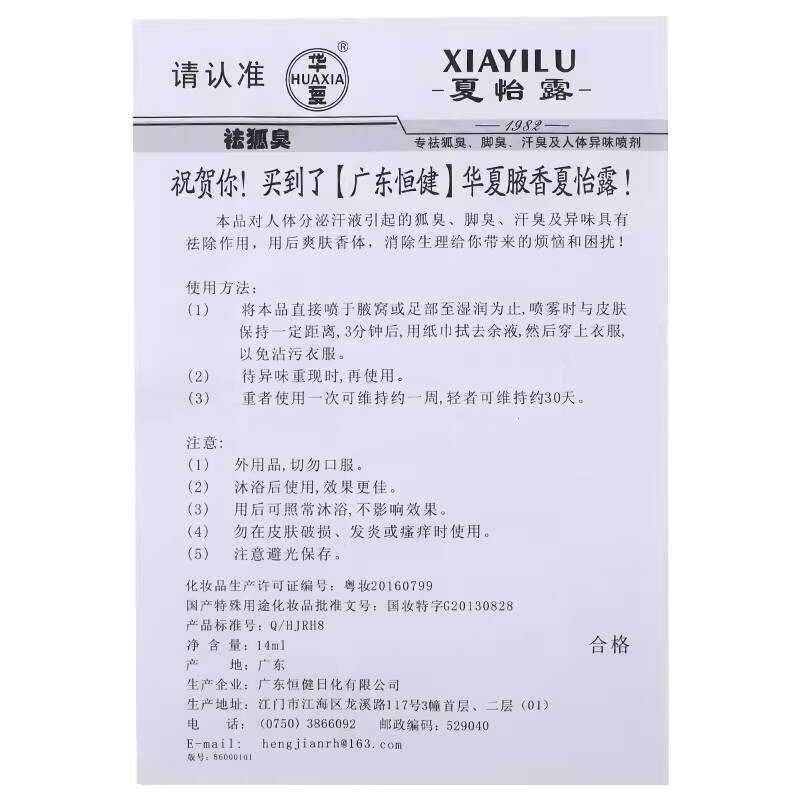 Xia Yilu Jiangmen Genuine 14ml Spray Liquid Deodorizing Water for Men and Women
