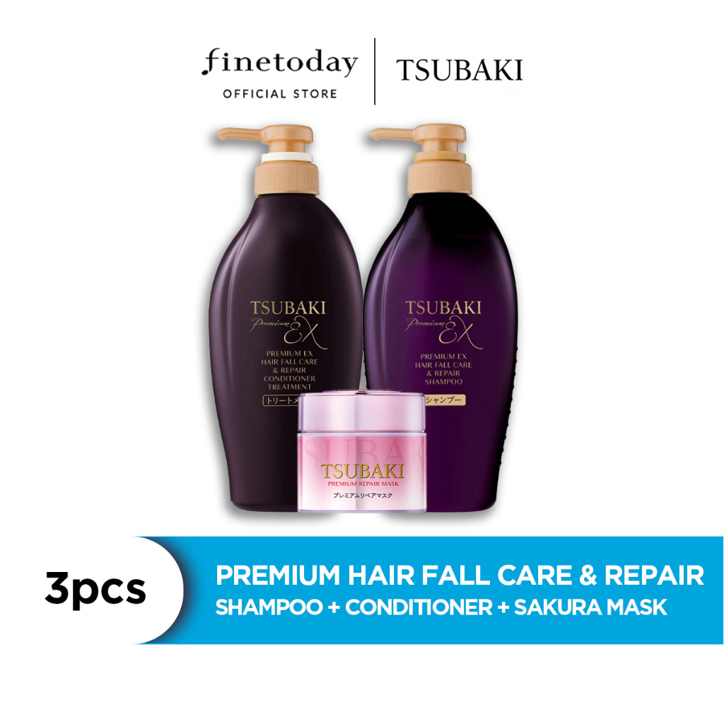 TSUBAKI Premium Hair Fall Care & Repair Shampoo, Conditioner & Ex Sakura Repair Mask Bundle