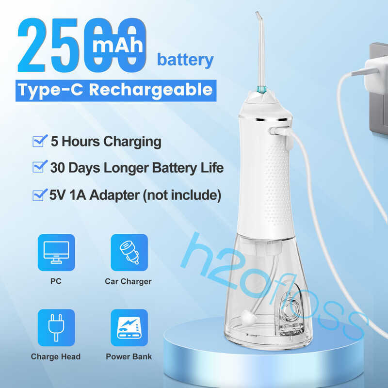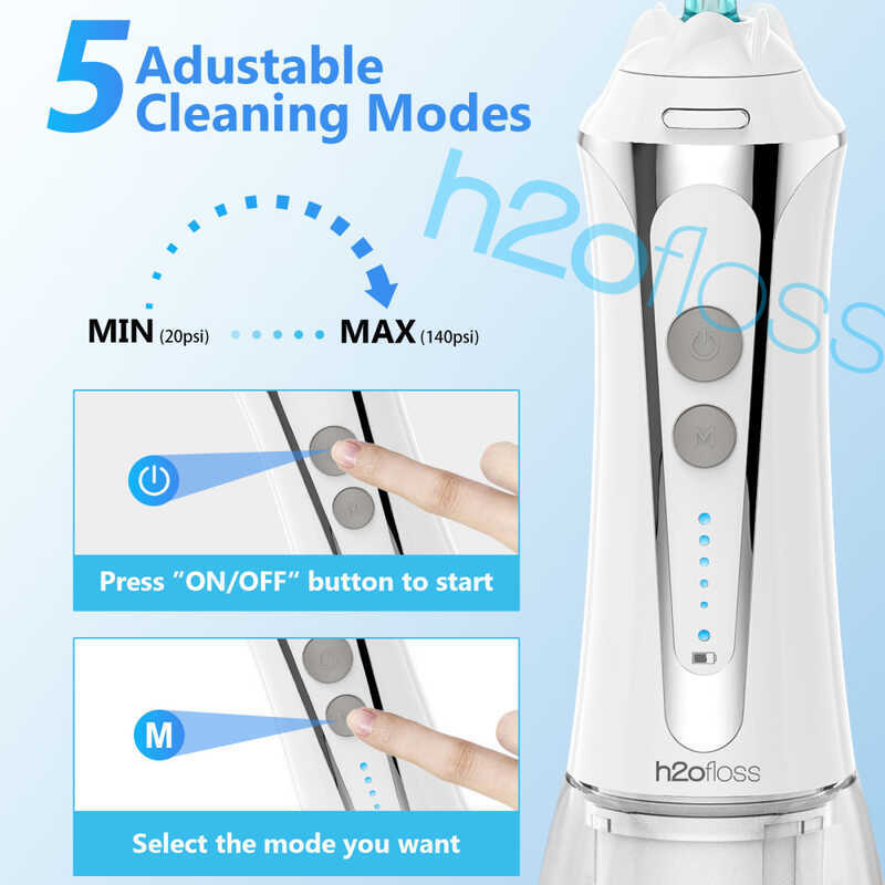H2ofloss Water Flosser For Teeth , Ipx7 Waterproof Oral Irrigator In 5 Modes And 6 Jets, USB Recharg