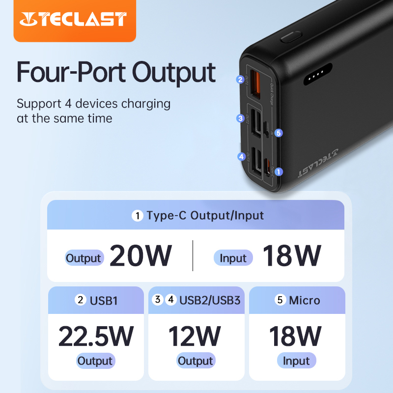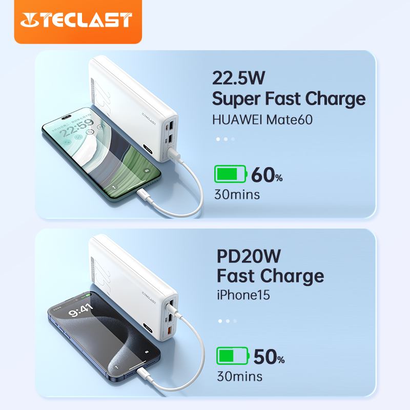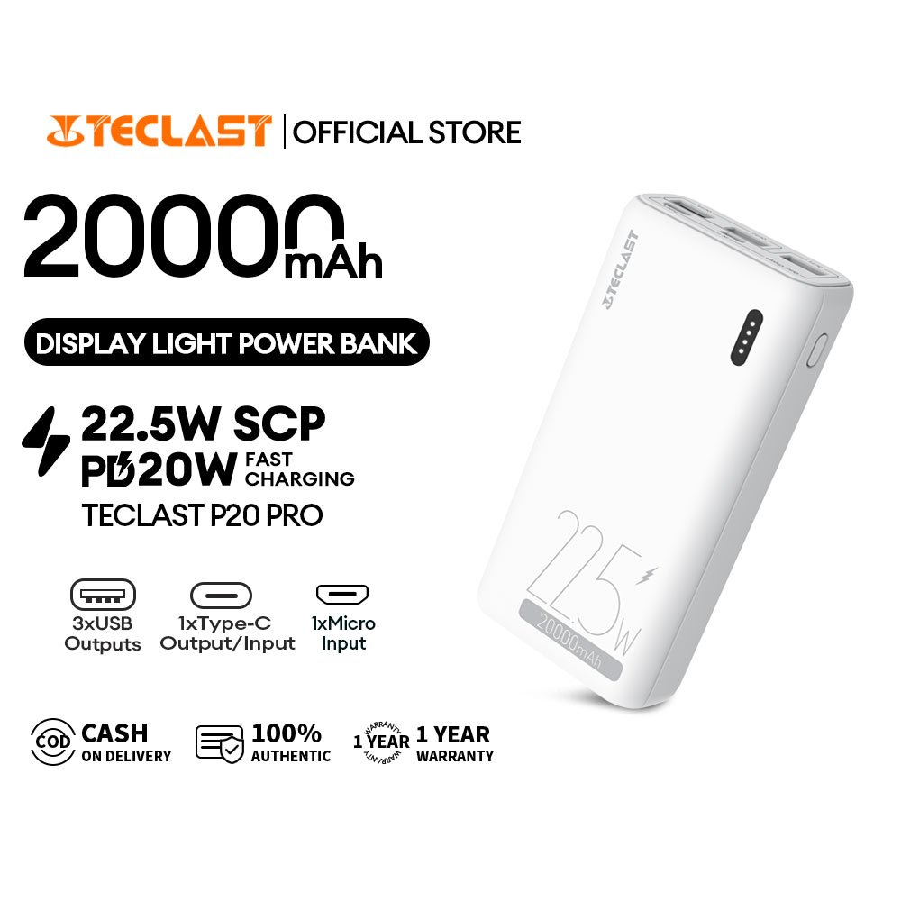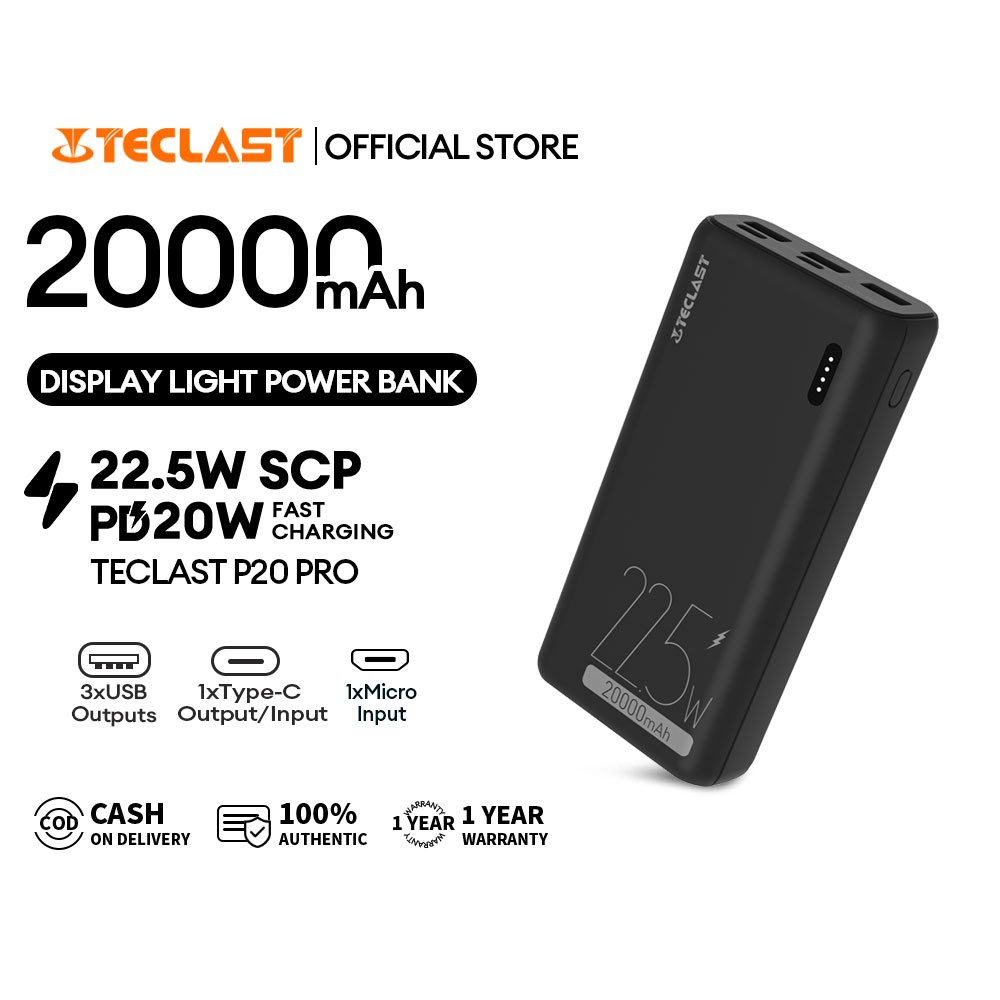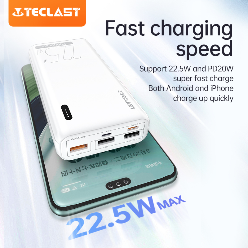 Teclast P20 PRO 20000mAh SCP22.5W Two-Way Fast Charging 3 Output 2 Input Type-C Original Power Banks