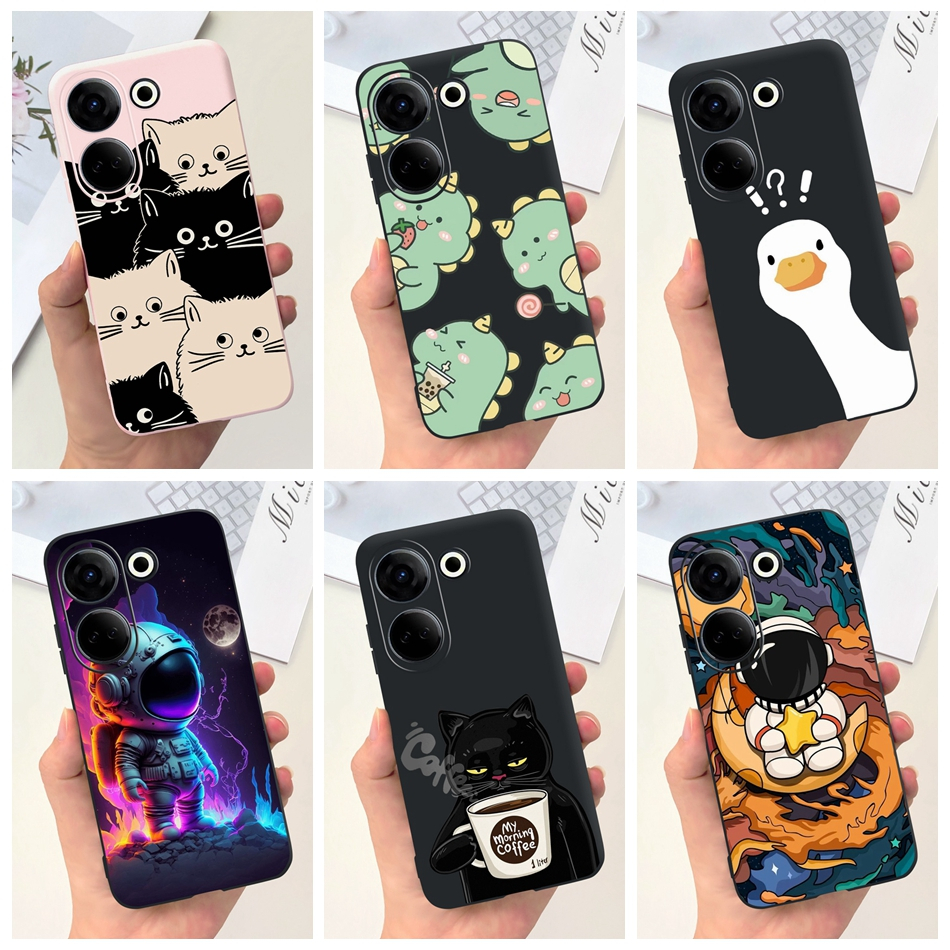 Tecno Camon 20 Pro CK7n Cute Cat Dinoaur Duck Astronaut Cartoon Jelly Phone Case Camon 20Pro 4G Soft Silicon TPU Cases