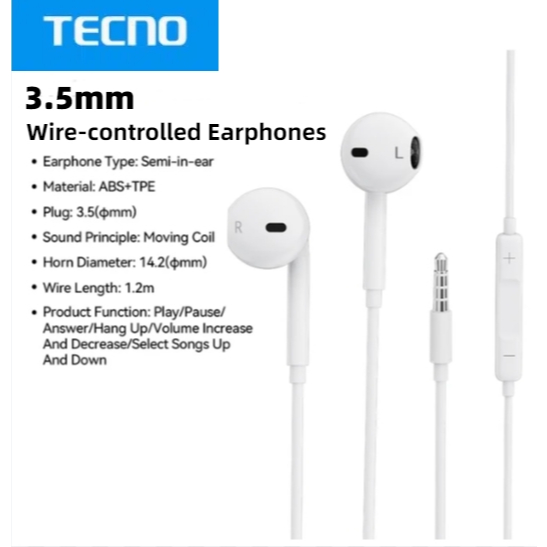 Tecno Headset Wired Earphone 3.5mm Bass Subwoofer Stereo Headphone In-Ear Earbuds