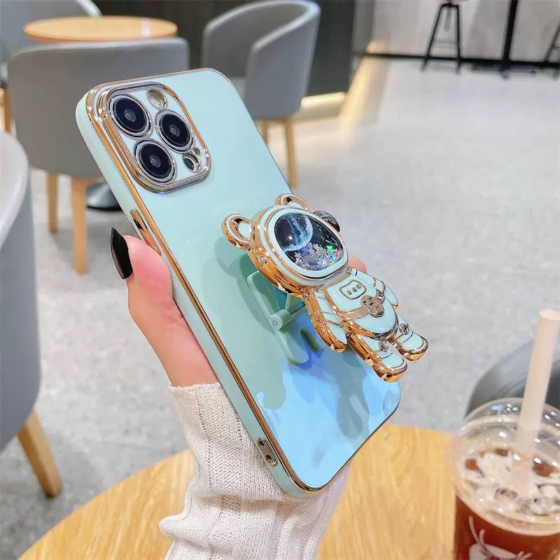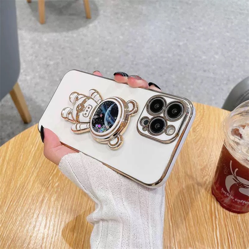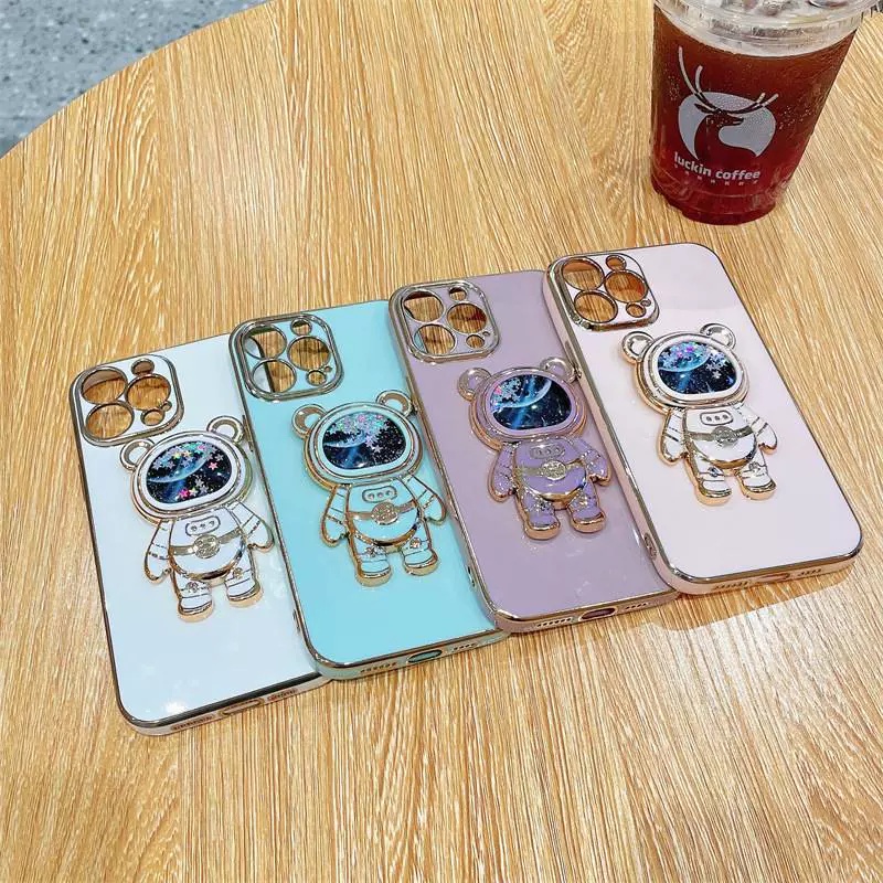 Tecno Zero X neo POP 5 lite Soft Cover Tecno Spark 8C 7T 7 9T Go 2023 Quicksand Space Bear Stand Phone Case