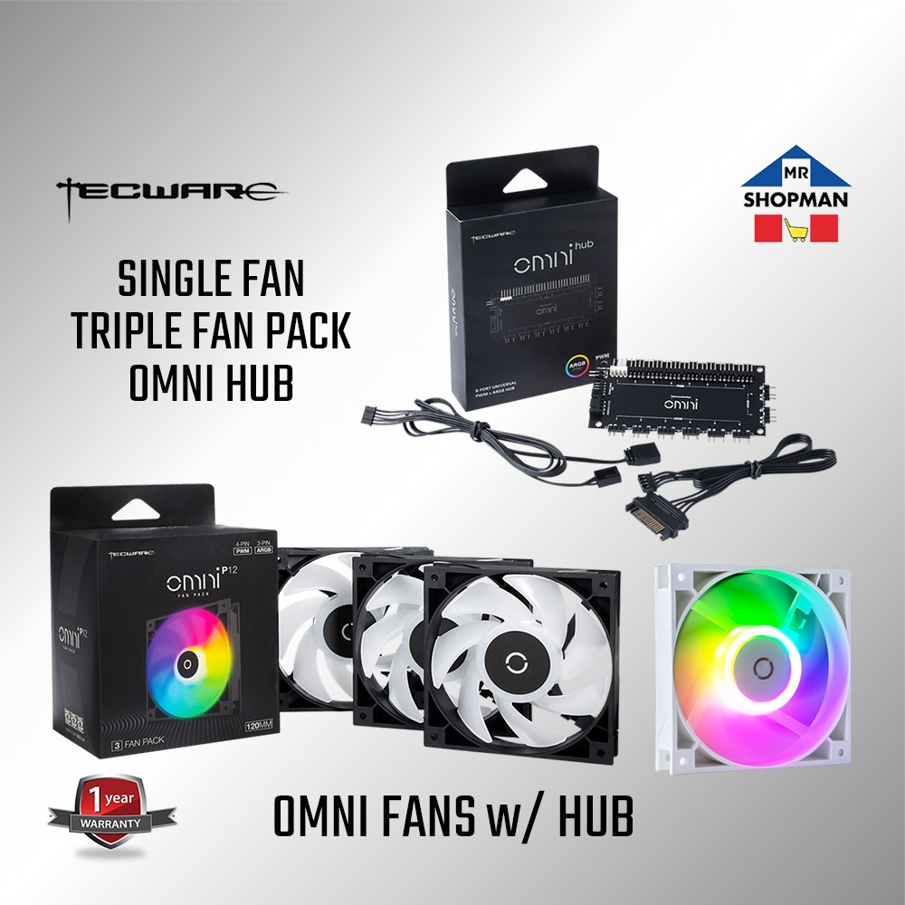 Tecware Omni P12 120mm Fans Black / White w/ Omni Fan Hub ARGB and PWM Sync
