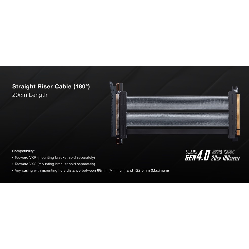 Tecware Straight Angle GPU Riser Cable PCIe 4.0 20cm 180degree / 90degree