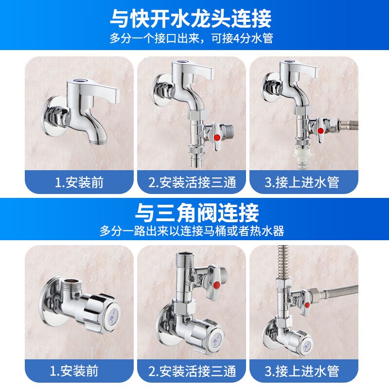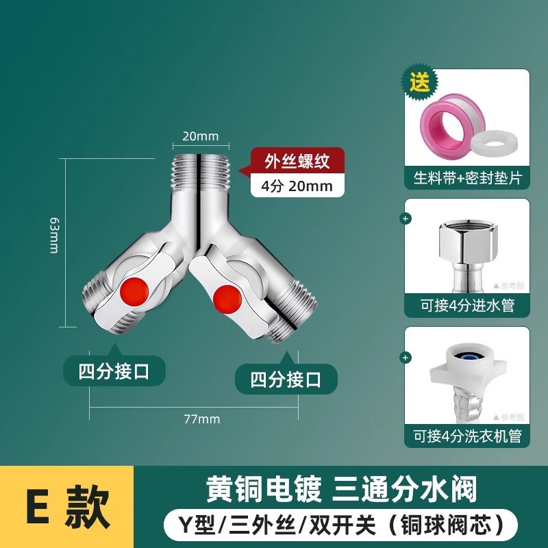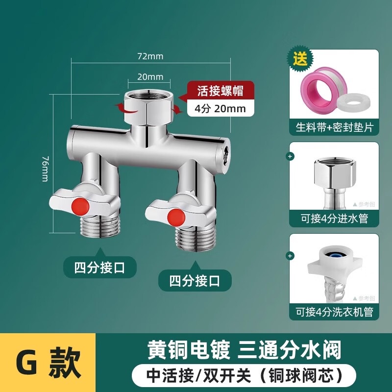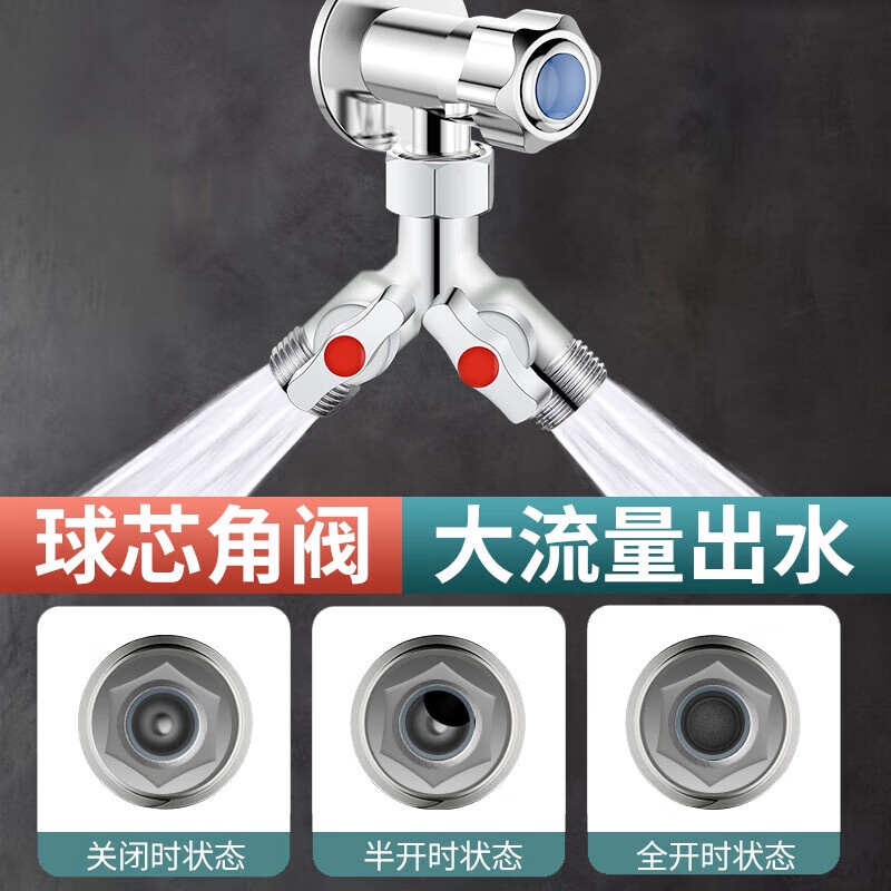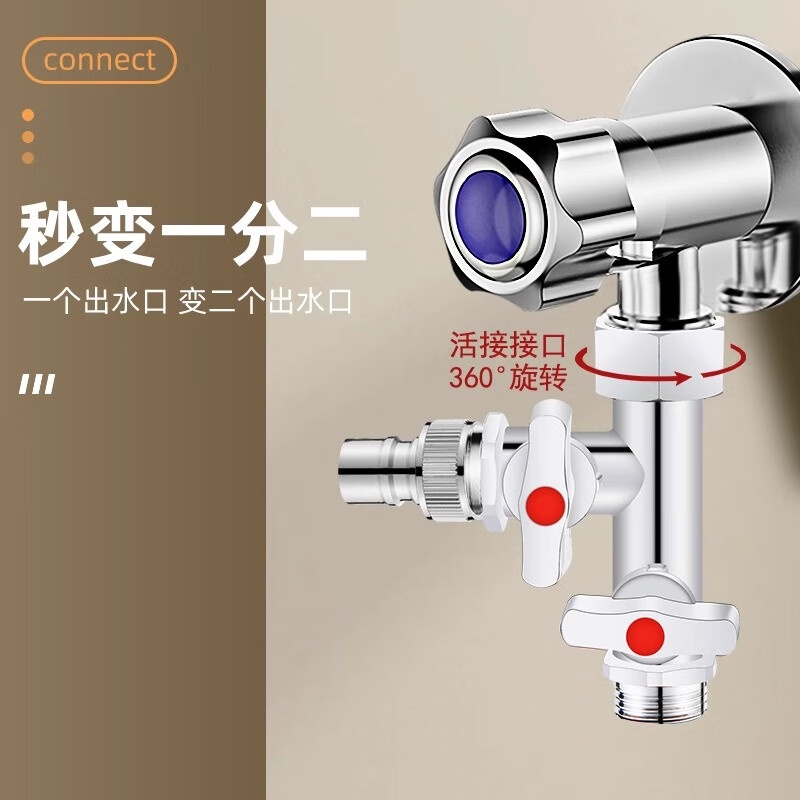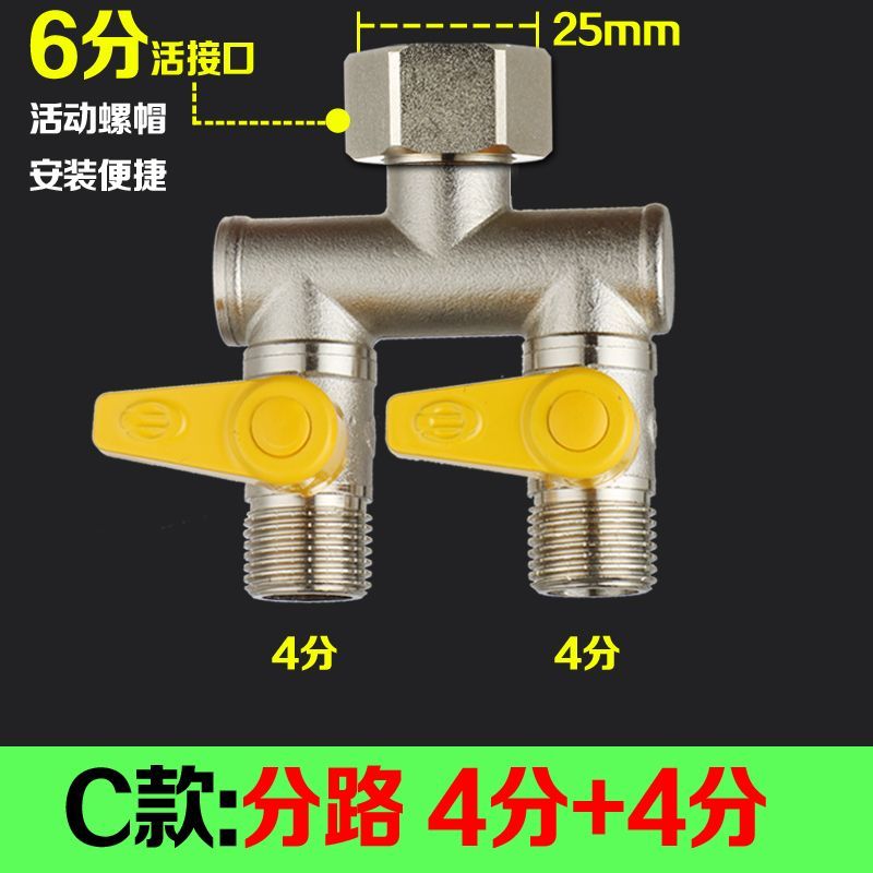 Tee Ball Valve with Switch Angle Valve One-Switch Two-Way Shunt Washing Machine Water Divide Valve Faucet Connector One Divided into Two