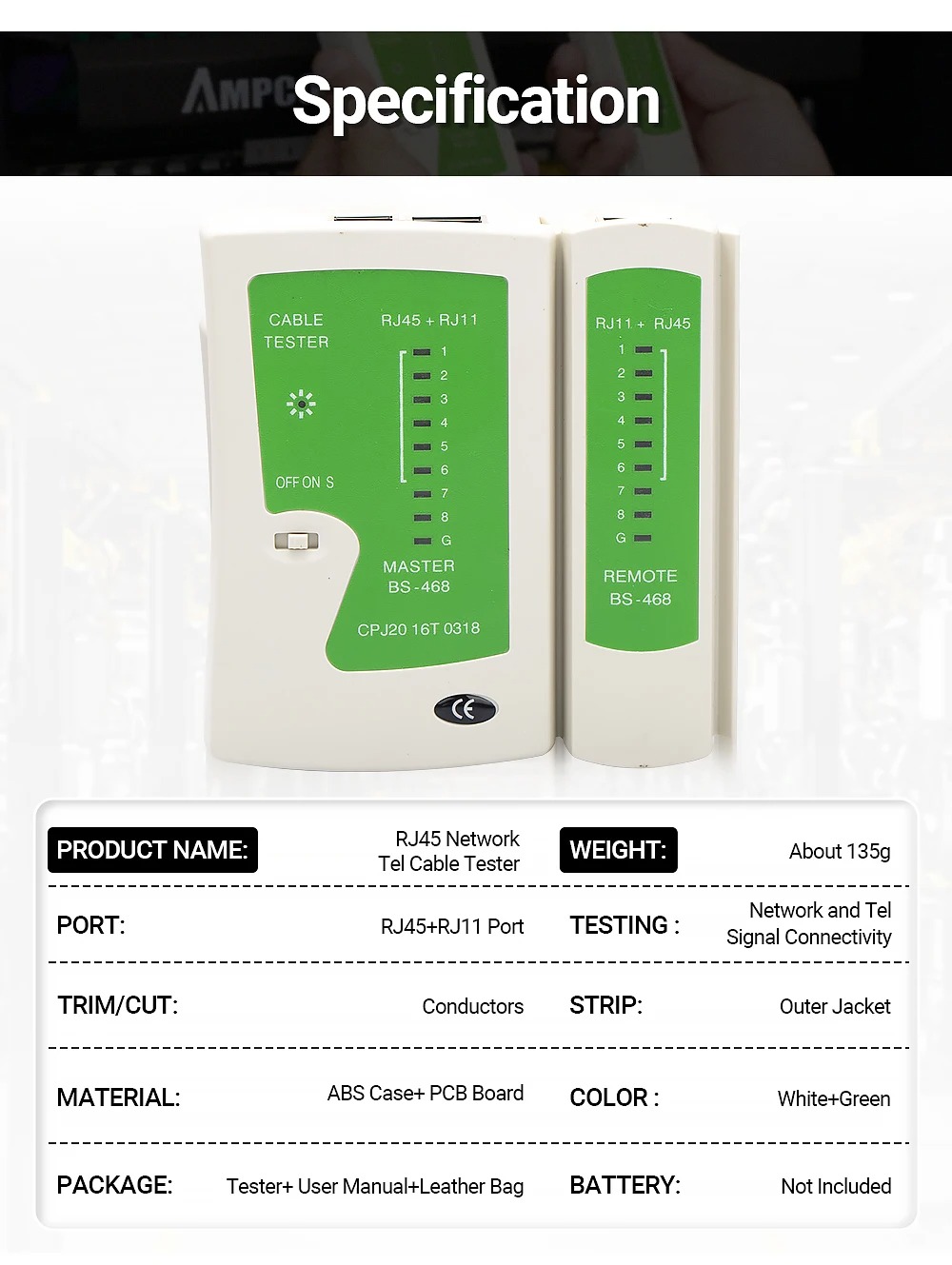 Telephone Network Cable Tester RJ45 LAN Ethernet Cables Tester for Cat5 Cat6 CAT7 RJ11