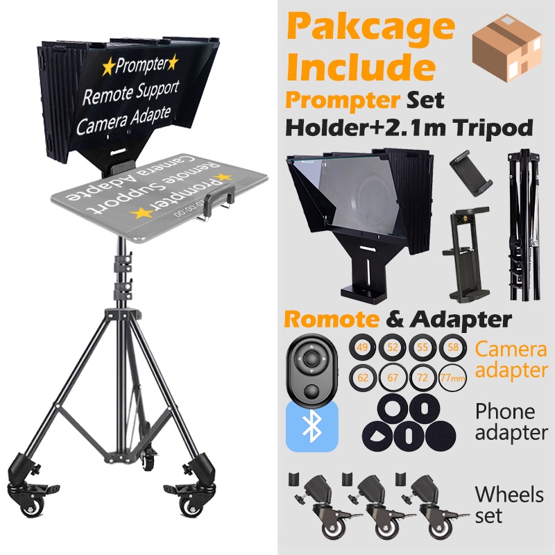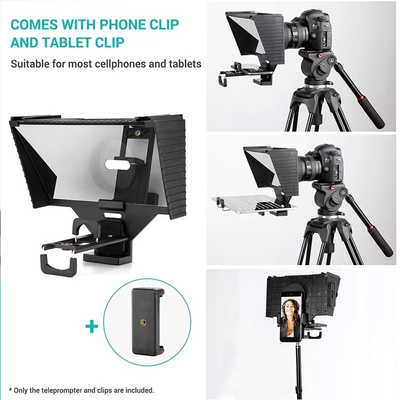 Teleprompter for Studio Live fits Mobile Tablet Clip Camera Portable with Remote Control Prompter