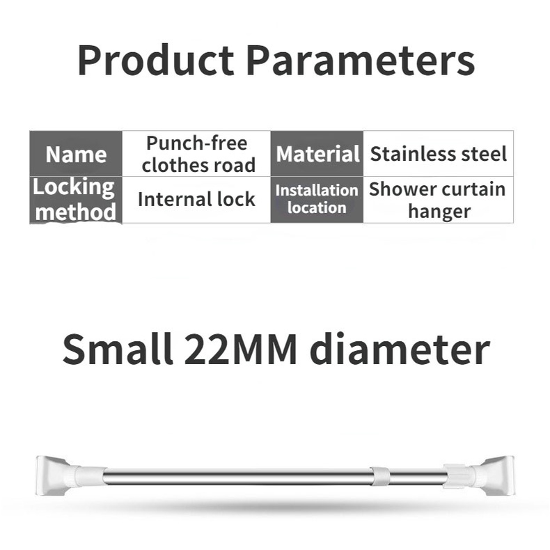Telescopic Rod Adjustable Punch Free Shower Bathroom Rod Extendable Bathroom Curtain Tension Rod