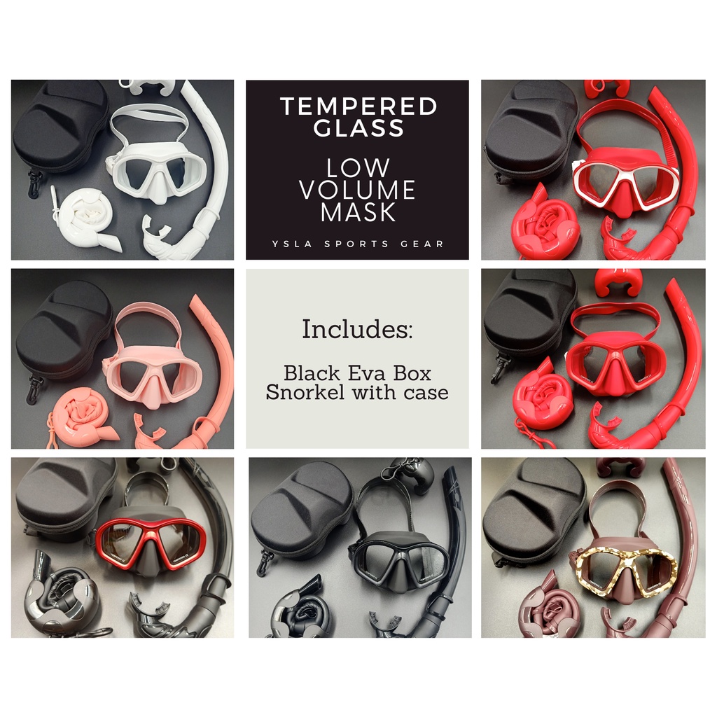 Tempered Glass Low Volume Freediving Mask Spearfishing Mask with J-type Snorkel set Freedive Mask