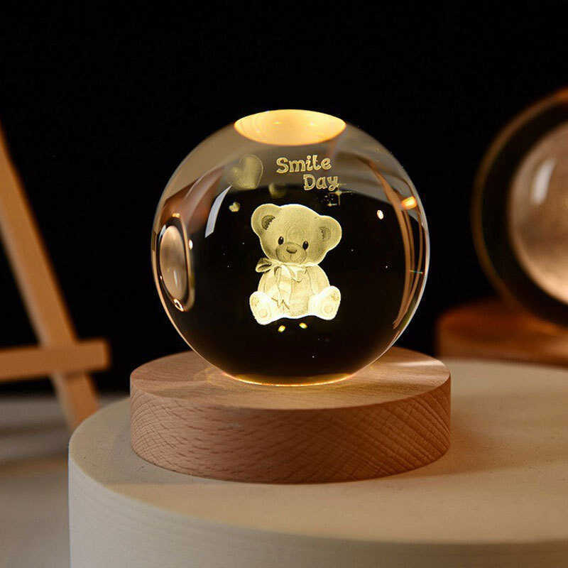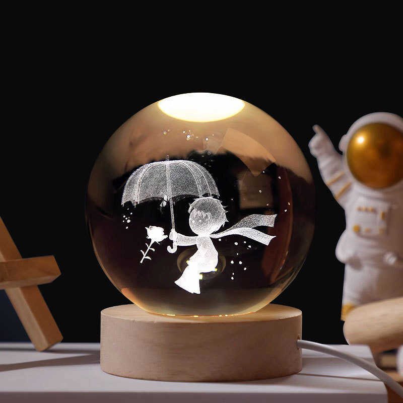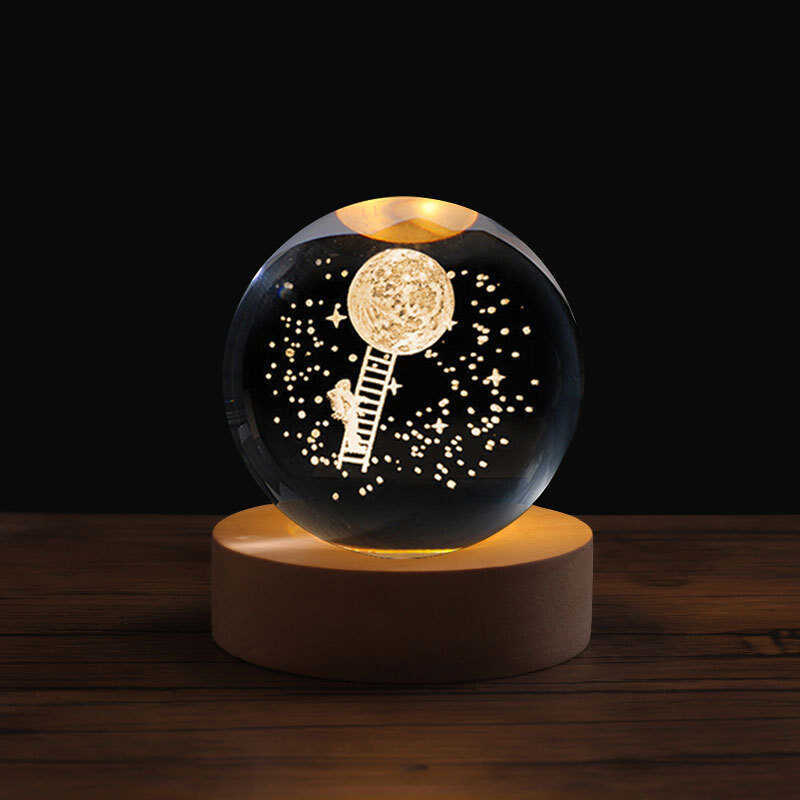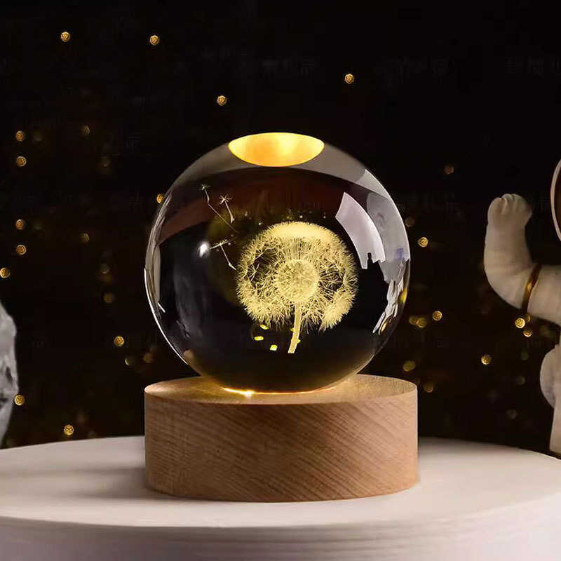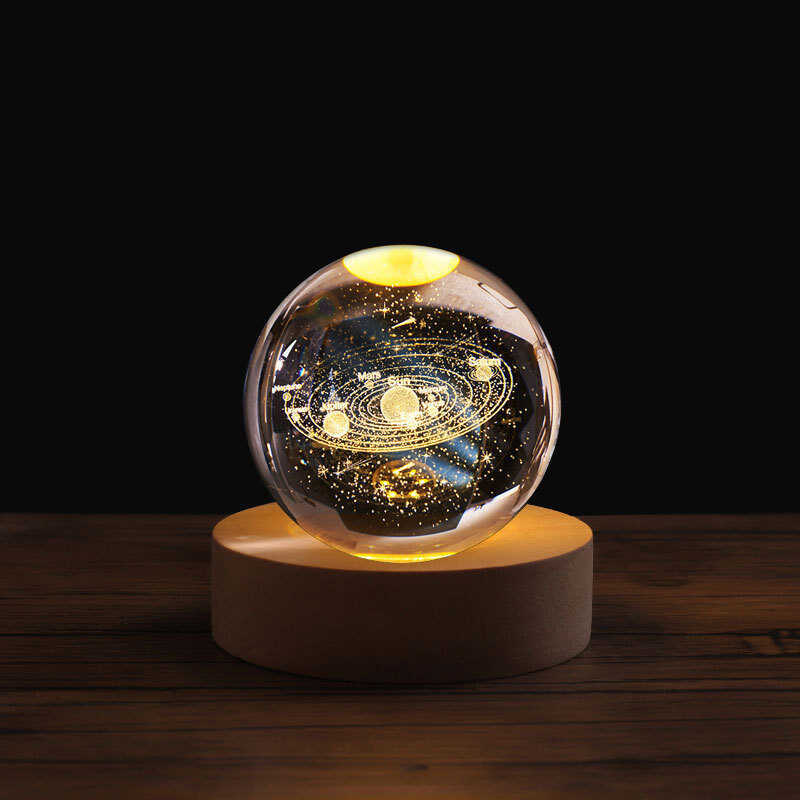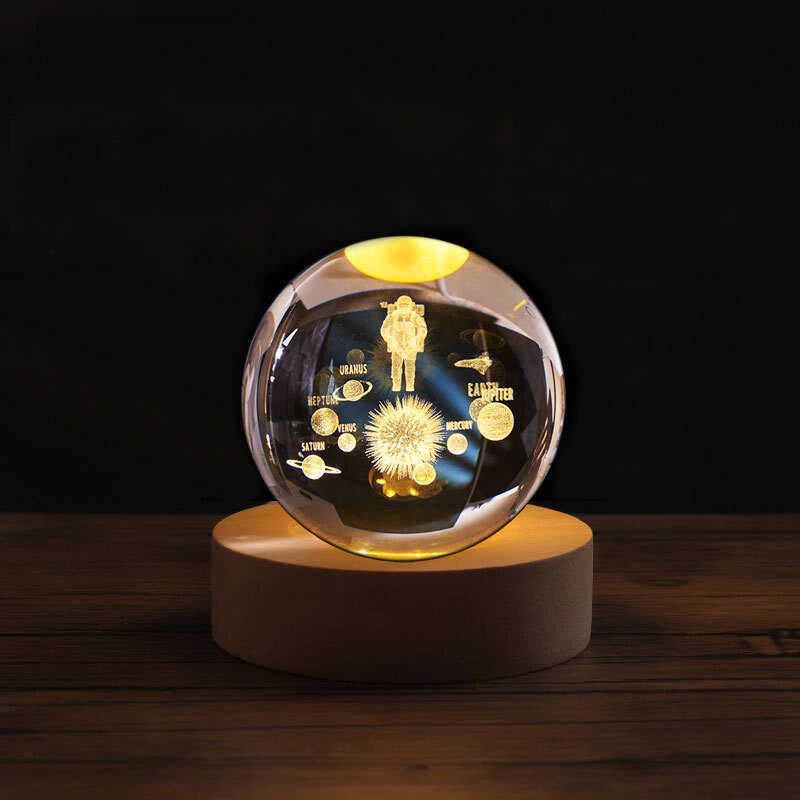 Temu Dropshipping Crystal Ball Night Light Galaxy 3D Laser Engraving Gift Creative Wooden Ornament