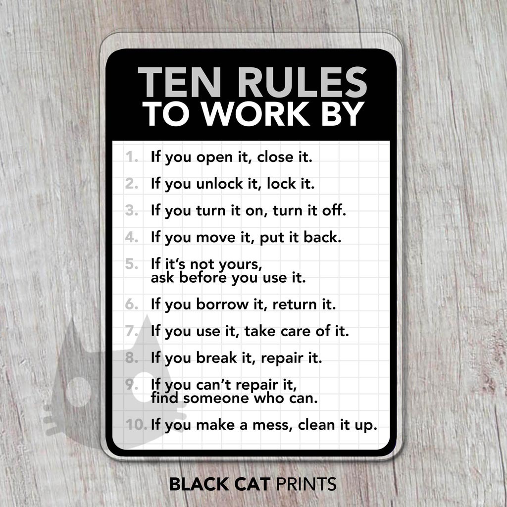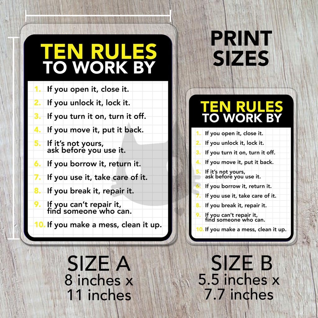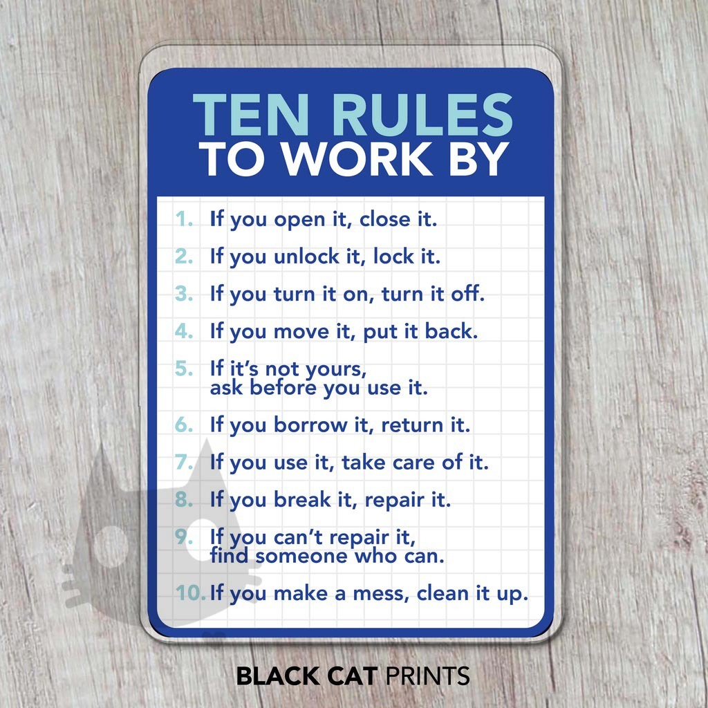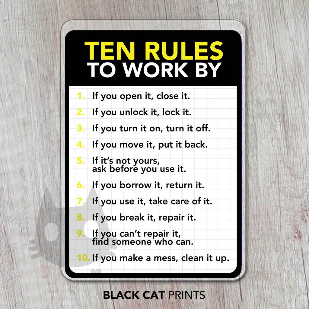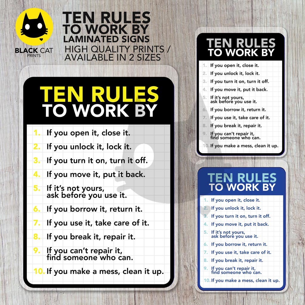 Ten Rules To Work By Sign | Laminated Signage | Sign Board