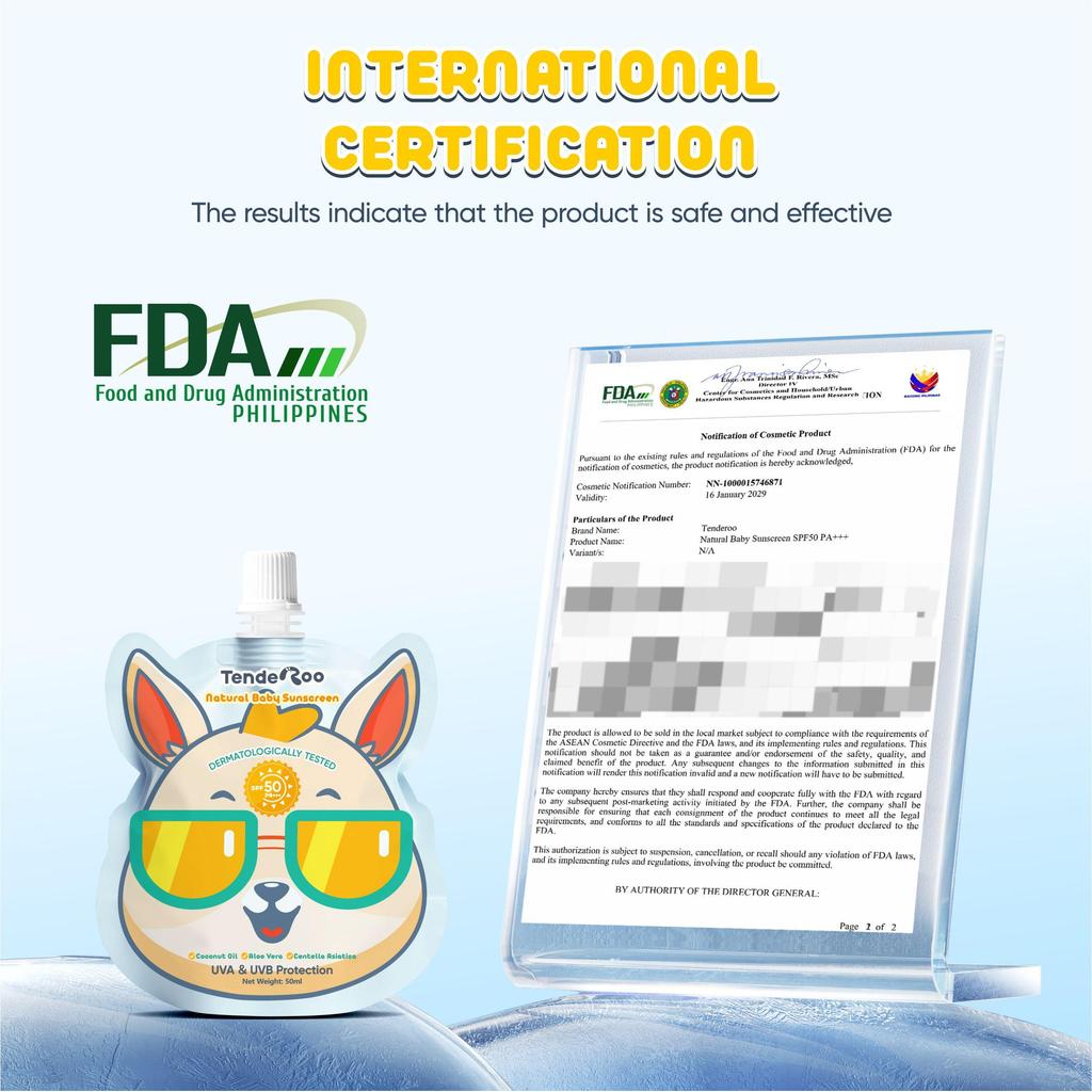 Tenderoo Natural Baby Sunscreen SPF50+PA+++ Sun Protection Moisturizing Hydrating Soothing Repairing