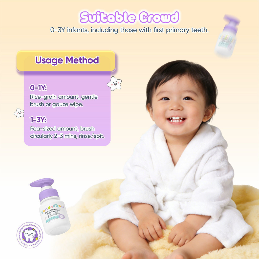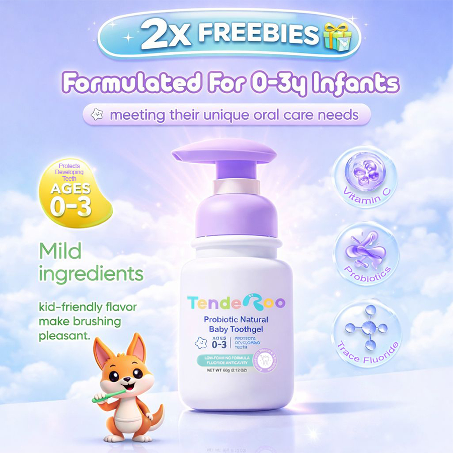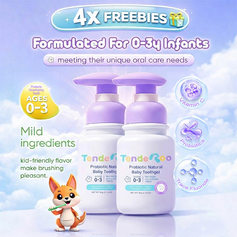 Tenderoo ToothGel Probiotic + Vit C • Blueberry Flavor • 0–3 Years with Freebies