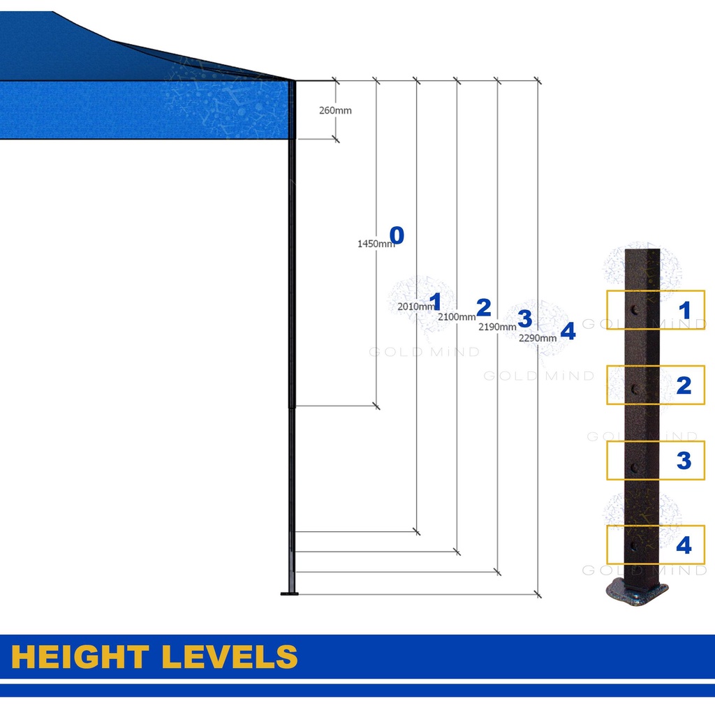 Tent Heavy Duty 2x2, 2.5x2.5, 2x3, 3x3 Meter Retractable Adjustable Height Complete Set