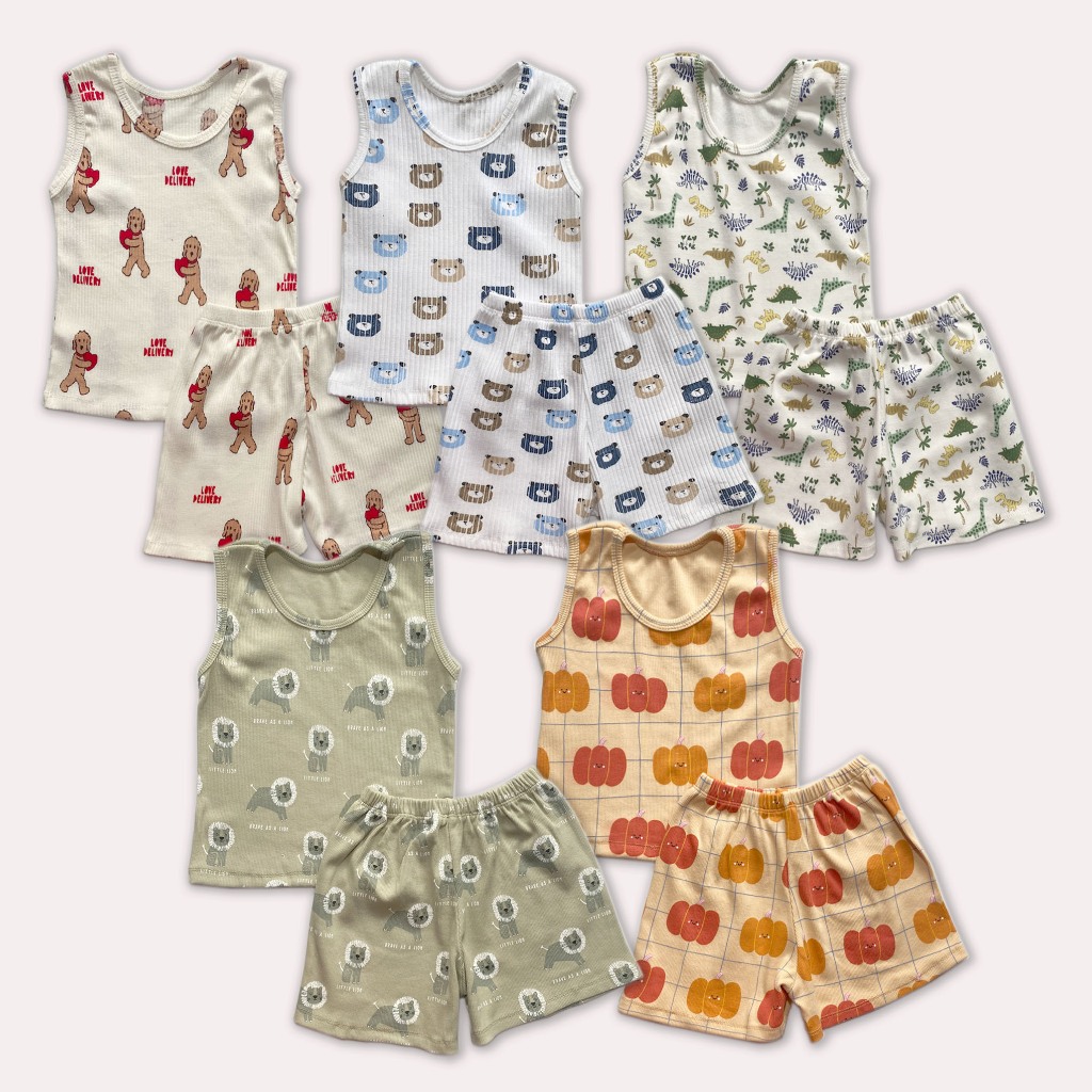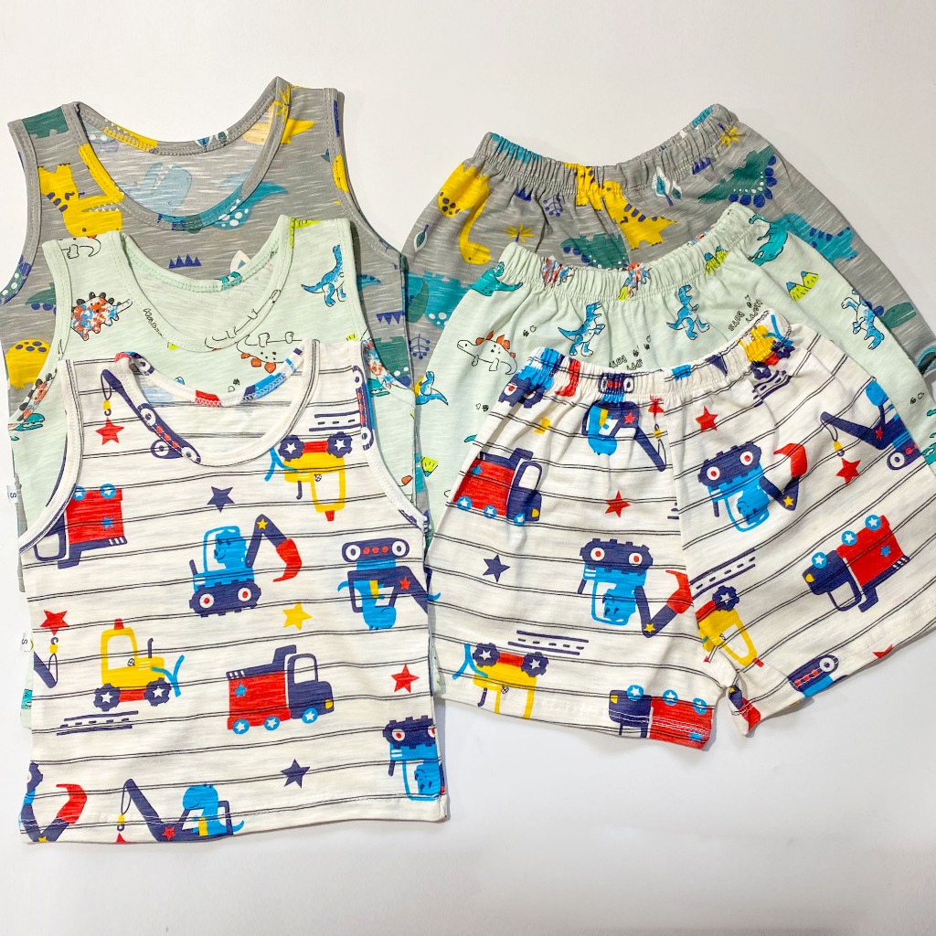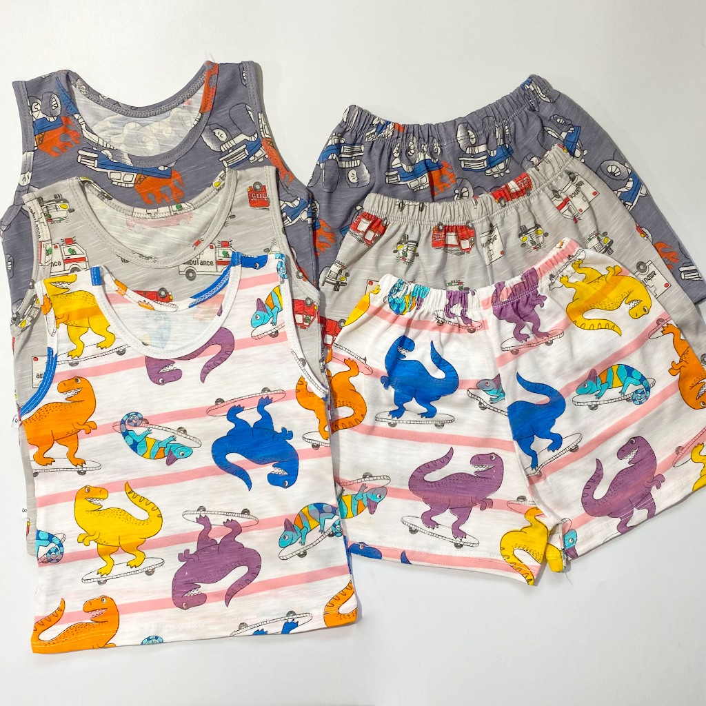Terno Coords Korean Cotton Sando Tank Top & Shorts Set or Baby Boy 1-7 Year Old Pambahay Casual Kids