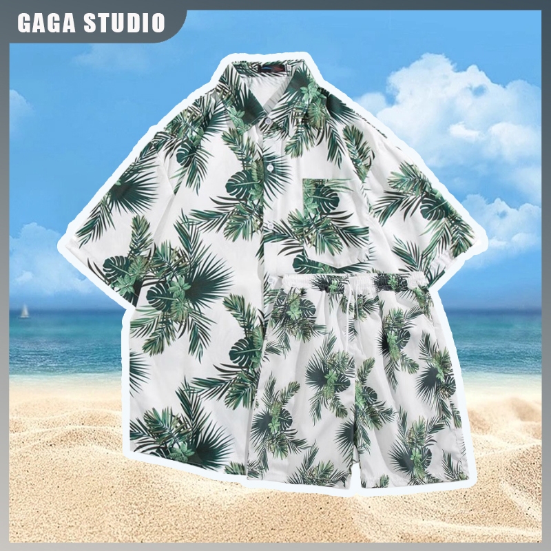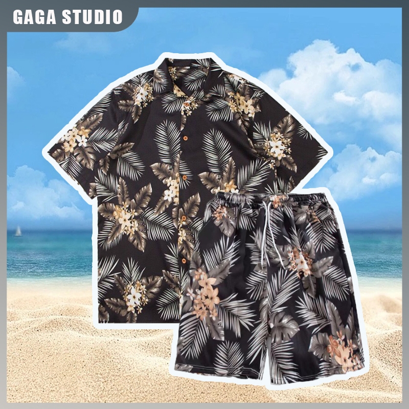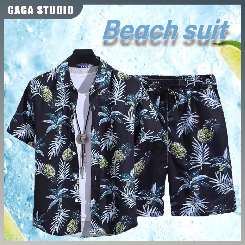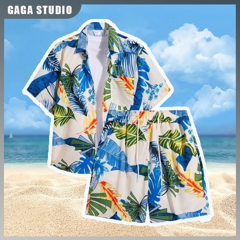 Terno For Men Couple Travel Vacation Outfit Hawaiian Polo For Men Loose Casual Suit Short Sleeve