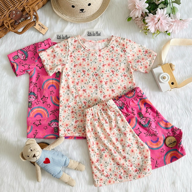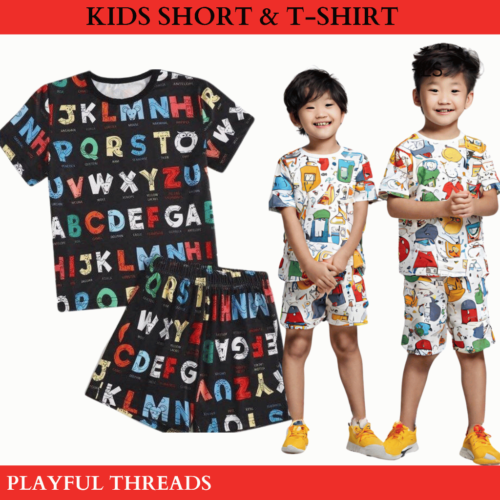 Terno Pambahay for Kid Boy & Girl Soft Cotton Spandex T-Shirt and Shorts Set with Fun Random Design