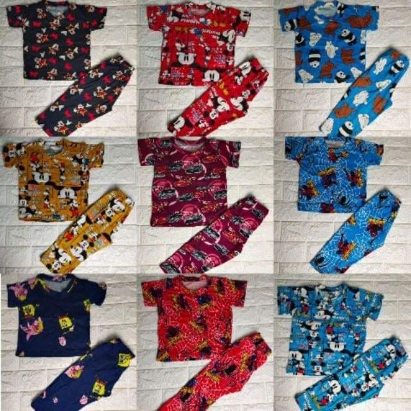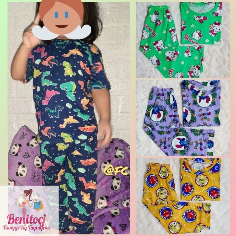 Terno Pambata T-shirt Pajama Set Night Sleepwear Pambahay Presko Pantulog Trendy Comfortable Wear.