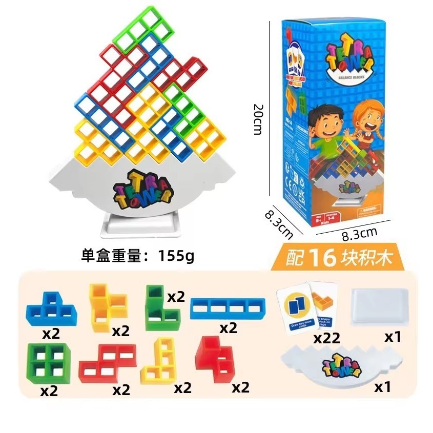 Tetra Tower Stacking Building Balance Block Toys for Kids Balancing Blocks Board Games Tetrix Game