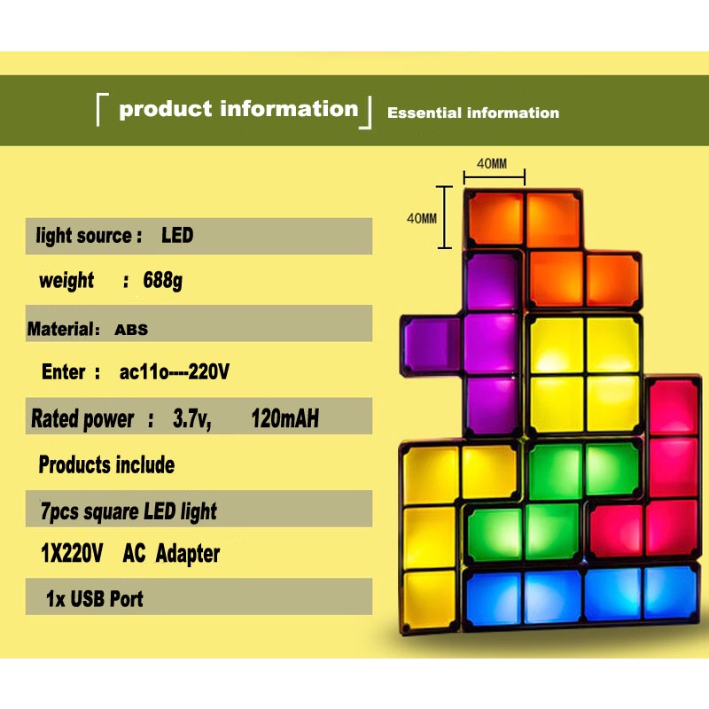 Tetris Puzzle LED Night Light Stackable LED Desk Table Lamp Constructible Block Christmas Gift