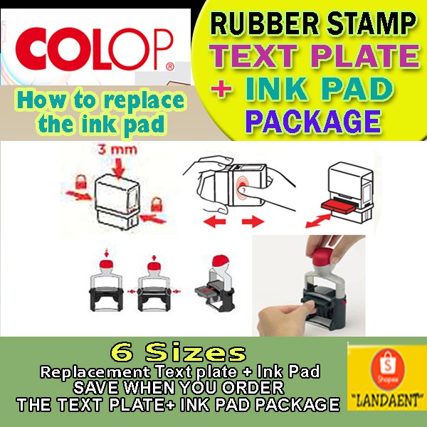 Text Plate + Ink Pad Package for Colop self-inking rubber stamps