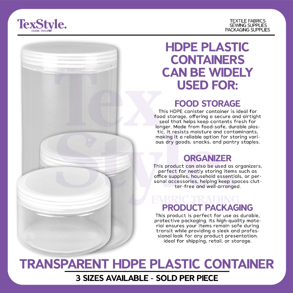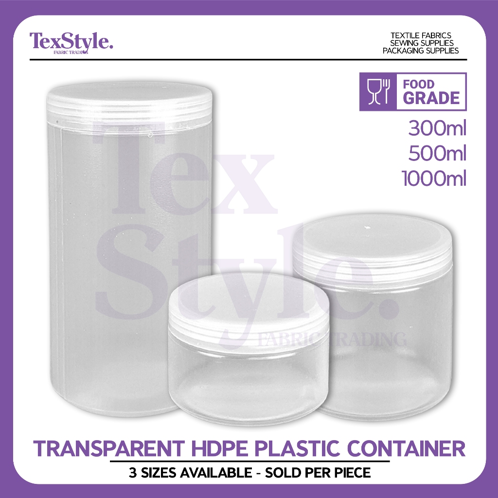Textstyle Clear HDPE Plastic Container Canister Clear Storage Canister 1000ml 500ml 300ml Canister
