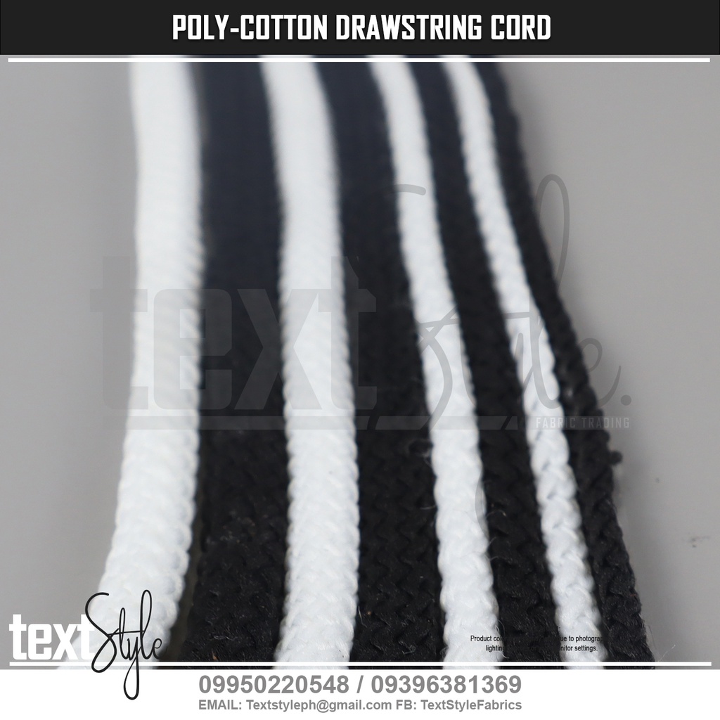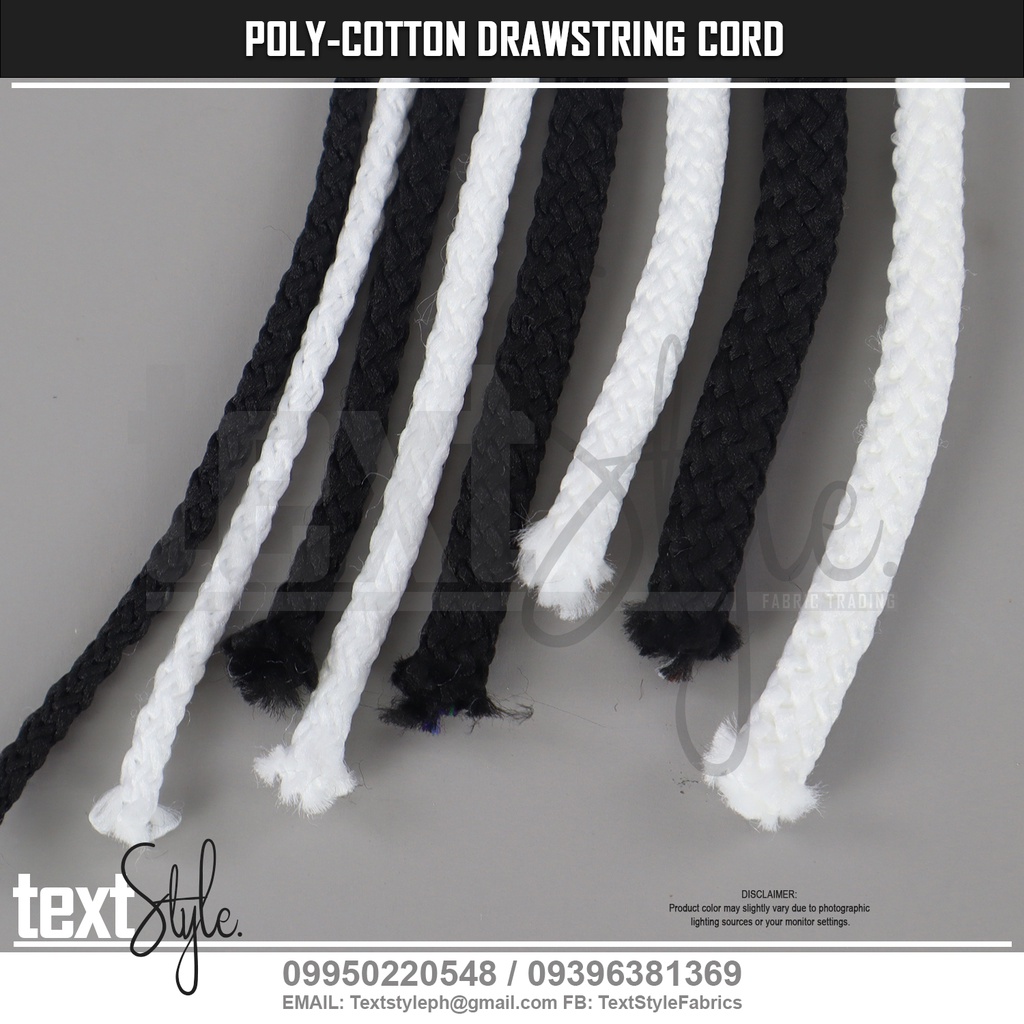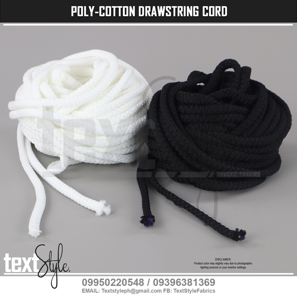Textstyle Polyester Cotton Round Drawstring Cord 2.5mm 4mm 5mm 6mm Black & White Cord Jacket Shorts