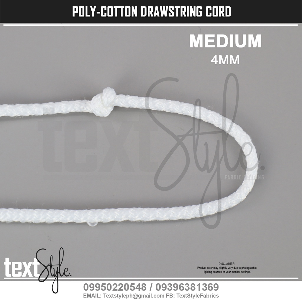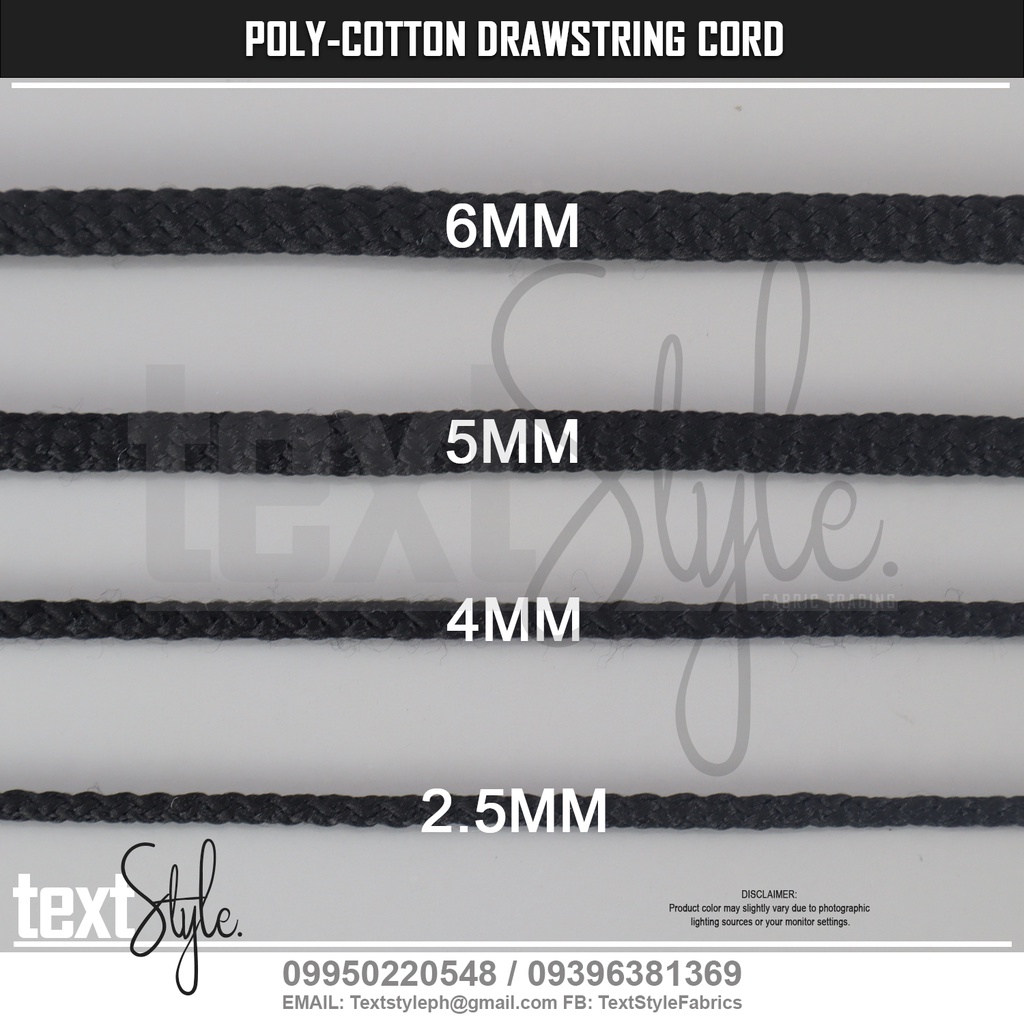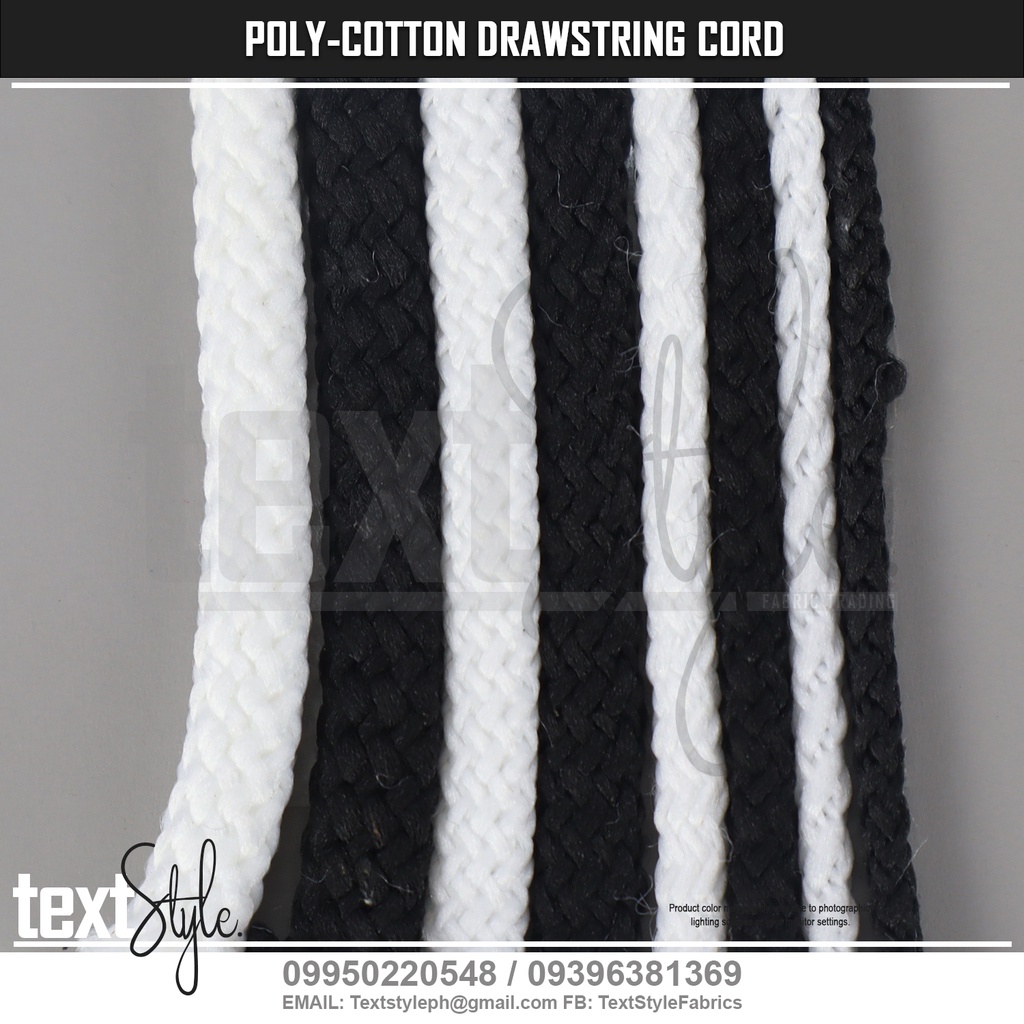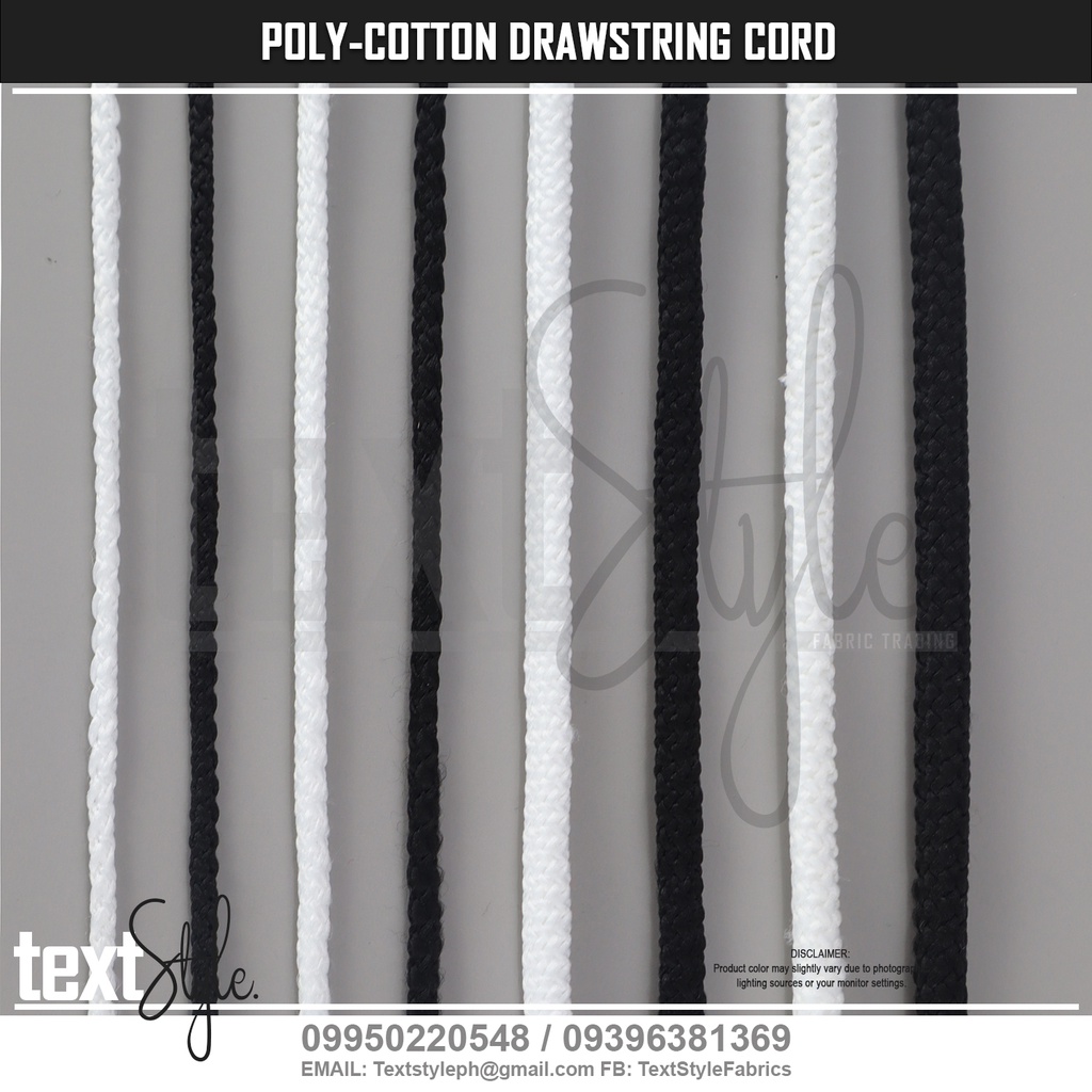 Textstyle Polyester Cotton Round Drawstring Cord 2.5mm 4mm 5mm 6mm Black & White Cord Jacket Shorts