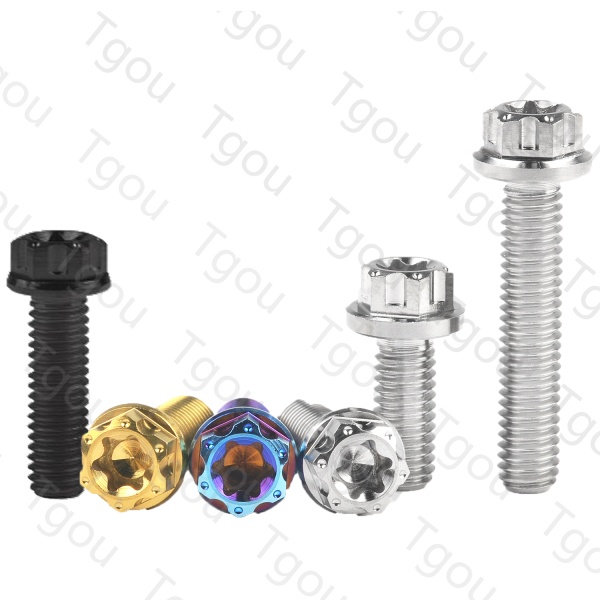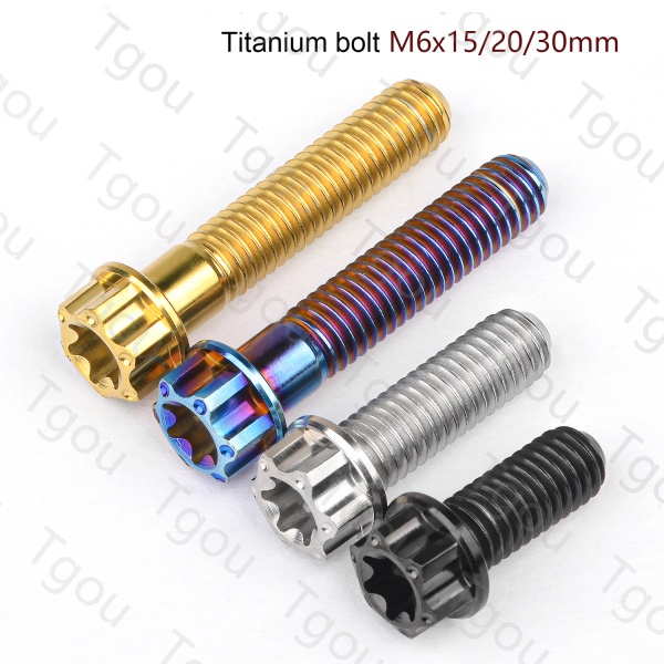 Tgou Titanium Bolt M6x15/20/25/30mm Flange Torx Head Screw for Bikes Fasteners Motorcycle Modification Silver Gold Burn blue Black
