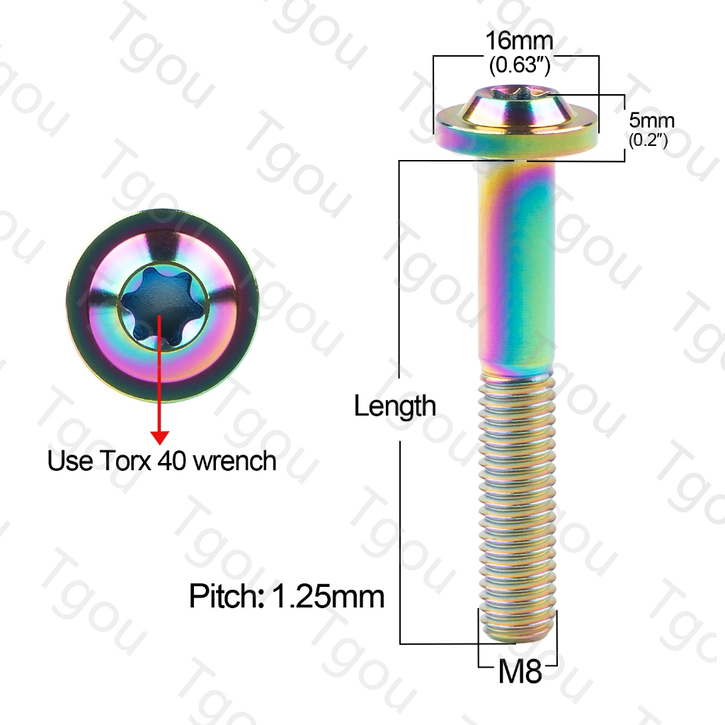 Tgou Titanium Bolt M8x15/20/25/30/35/40/50/60/70mm Torx T40 Head Sercws for Motorcycle Disc Brake