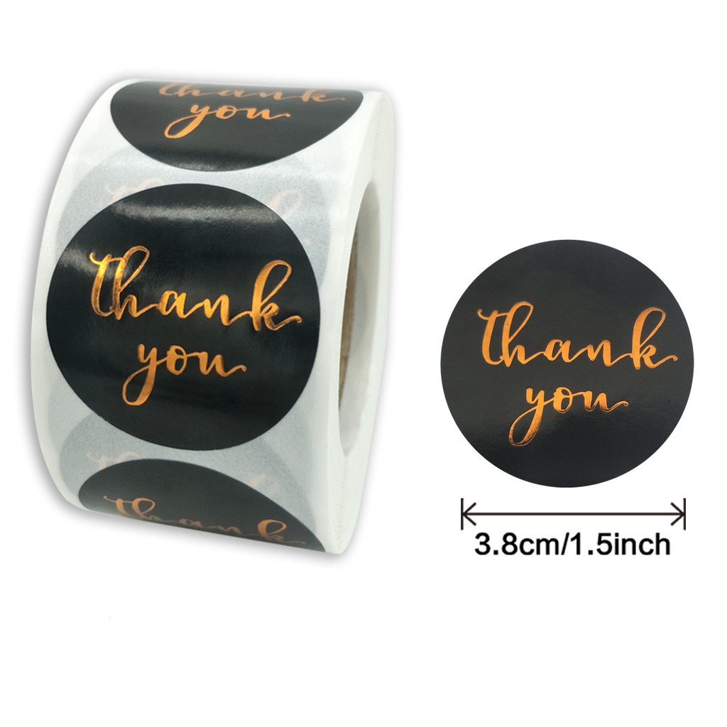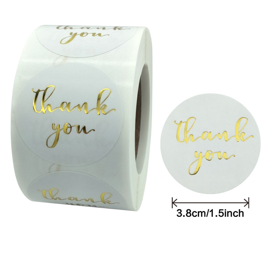 Thank You Label Sticker 1.5" Round with Gold and White Heart 500 Labels per Roll, Thank You Sticker Gold for Birthdays, Weddings, Giveaways, Bridal Showers and Perfect
